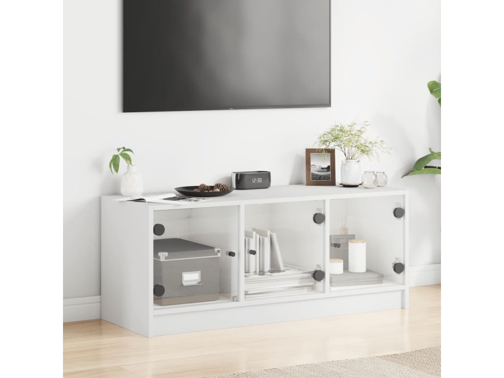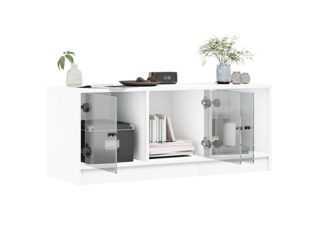 vidaXL TV skrinka so sklenenými dvierkami biela 102x37x42 cm