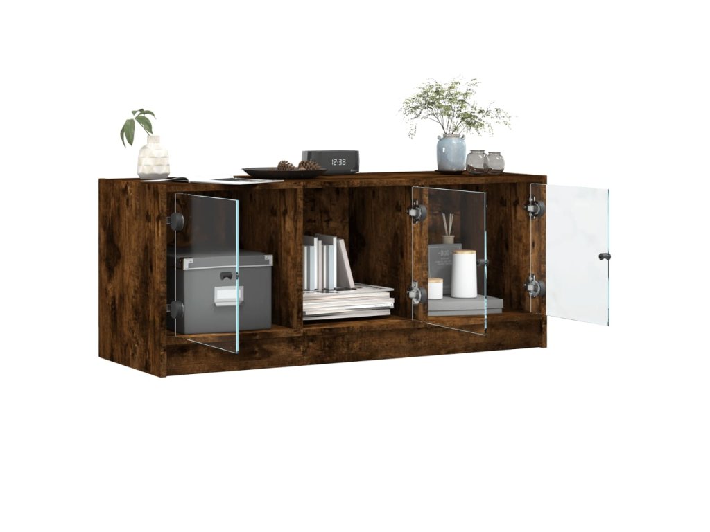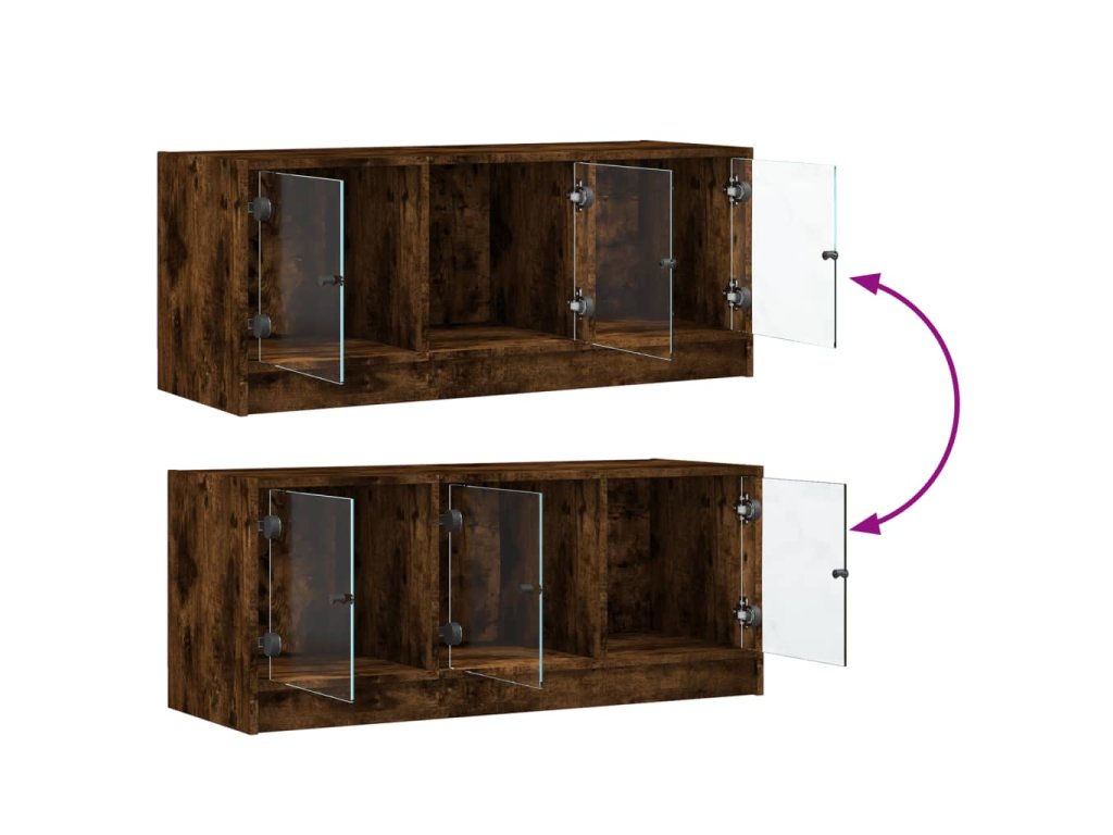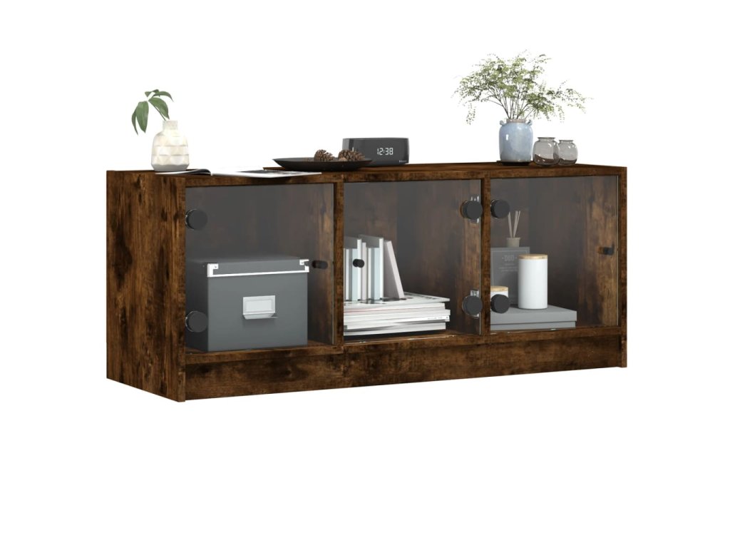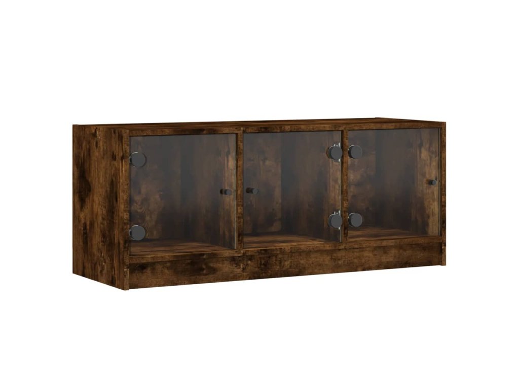 vidaXL TV skrinka so sklenenými dvierkami dymový dub 102x37x42 cm