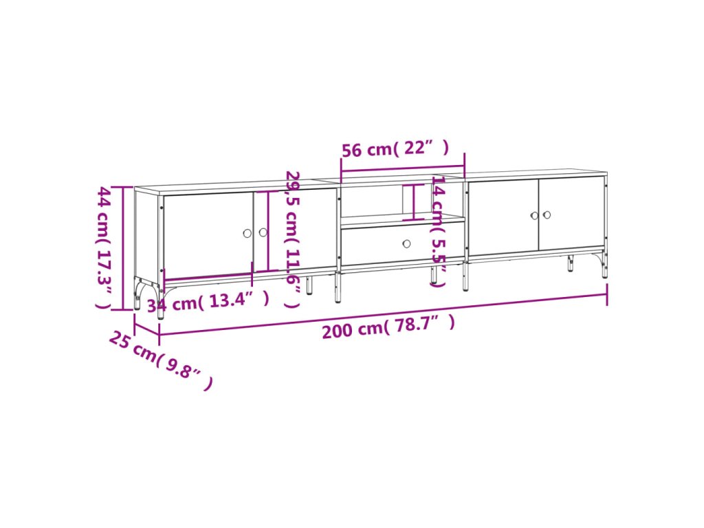 vidaXL TV skrinka so zásuvkou čierna 200x25x44 cm kompozitné drevo