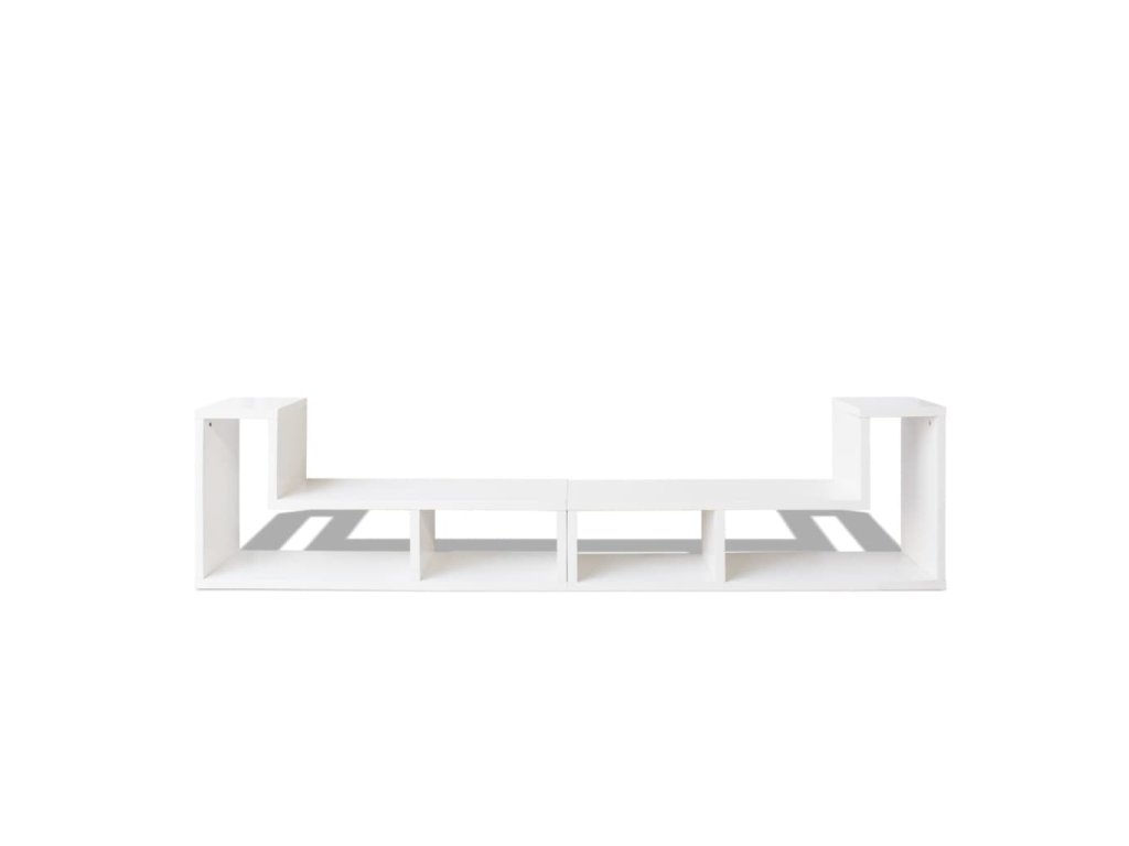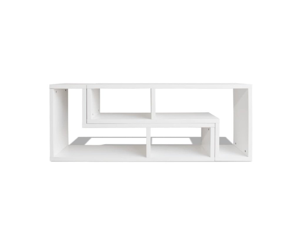 Vďaka robustnej konštrukcií je táto TV skrinka vysoko odolná. Televízna skrinka je vyrobená z 2 políc v tvare L, ktoré môžu byť uložené v rôznych konfiguráciách. Veľké poličky poskytujú dostatok priestoru pre uloženie vášho DVD prehrávača, hernej konzoly, streamovacieho zariadenia, nosičov, dekorácií, atď.