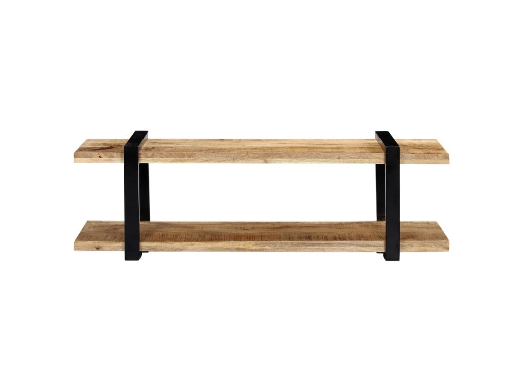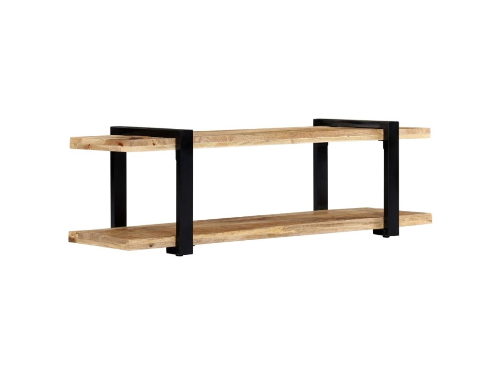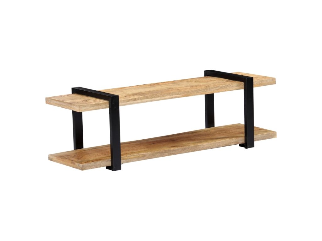 TV skrinka je vyrobená z masívneho mangovníkového dreva, čo je pevné a tvrdé drevo s hustou štruktúrou a na povrchu má krásne hnedé alebo zlaté pruhy a kontúry. Každý krok procesu výroby sa vykonáva s najväčšou starostlivosťou, či už ide o leštenie, natieranie alebo lakovanie. Vďaka remeselnému spracovaniu a krásnej štruktúre dreva je každý kus nábytku jedinečný a trochu odlišný od ostatných. Práškované oceľové nohy jej dodávajú stabilitu. Do spodnej poličky môžete uložiť DVD prehrávače, herné konzoly, streamingové zariadenia a nosiče médií.