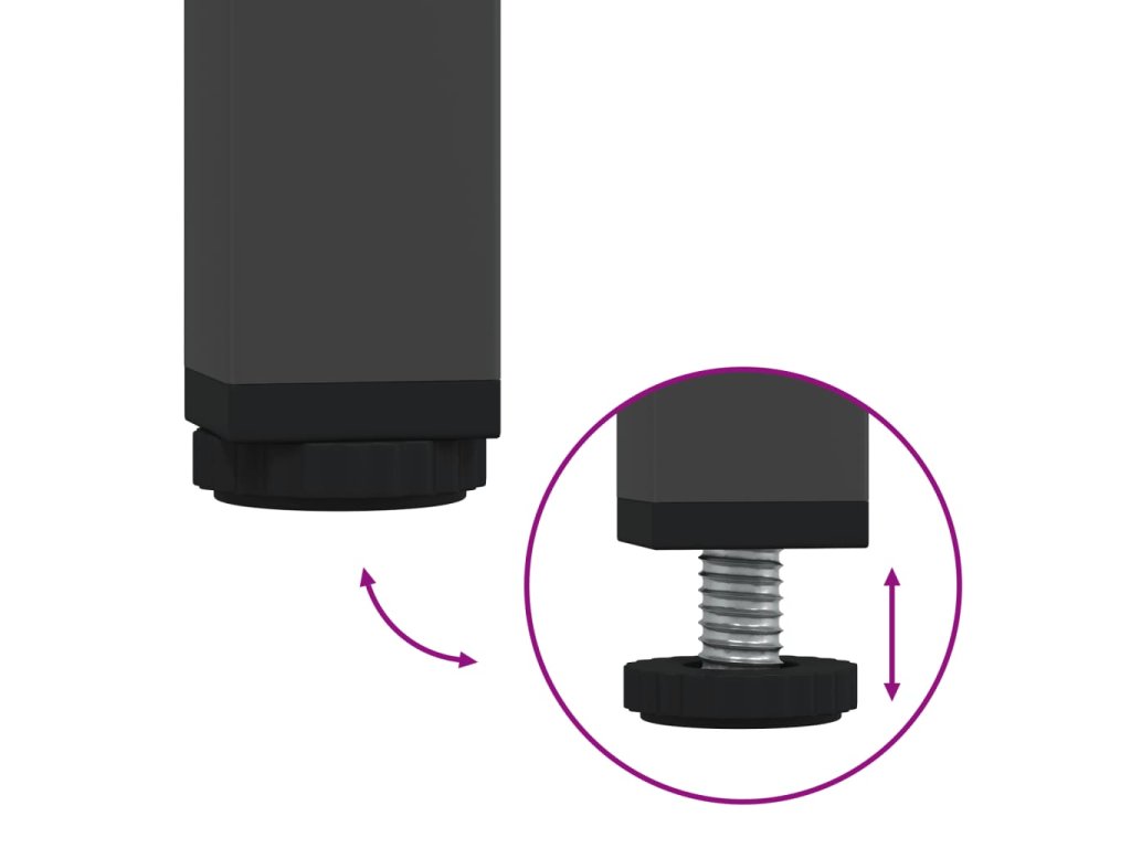- Nastaviteľné skrutkovacie nožičky: Táto TV skrinka je vybavená štyrmi nastaviteľnými skrutkovacími nohami, ktoré vyrovnávajú nerovnosti podlahy a zabezpečujú stabilitu a rovnováhu.