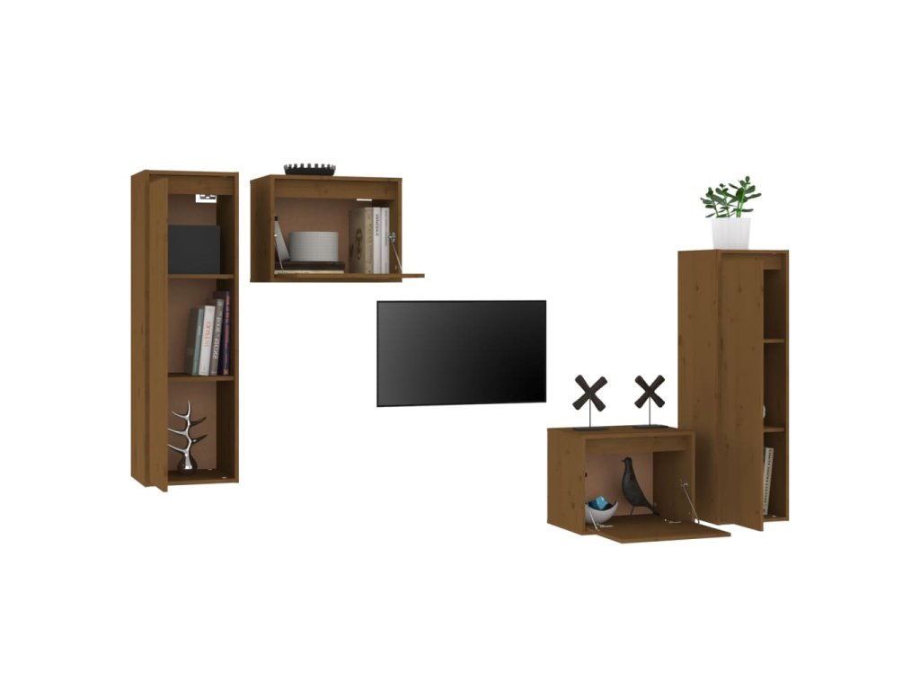 vidaXL TV skrinky 4 ks medovo-hnedé masívna borovica