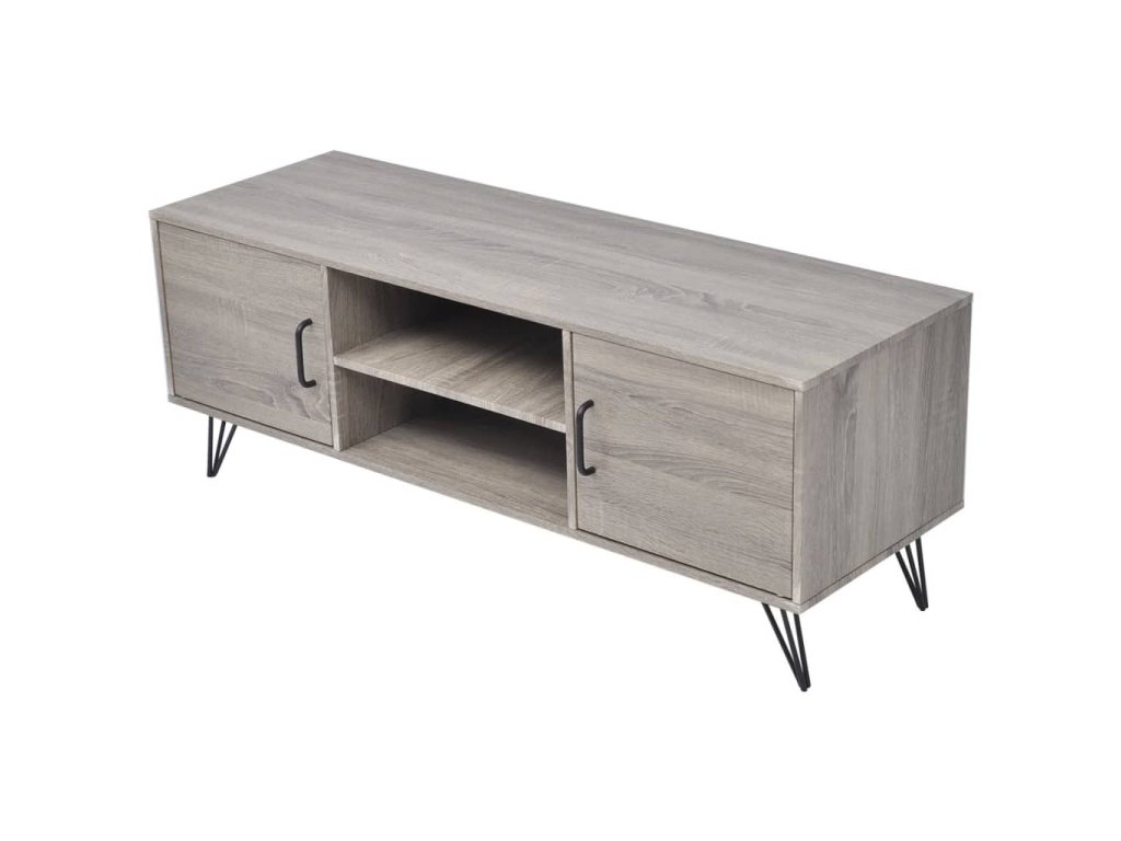 Šedá farba dáva stolíku rustikálny vzhľad, vďaka čomu sa bude hodiť do akejkoľvek domácnosti. Vďaka vysoko kvalitnému materiálu MDF a silným oceľovým nožičkám je tento TV stolík veľmi pevný a odolný. Veľké skrinky a poličky s dostatočným priestorom vám umožnia uložiť DVD prehrávač, hernú konzolu, streamingové zariadenie a nosiče médií. Dve zásuvky na káble umožňujú úhľadné uloženie všetkých káblov mimo dohľad.