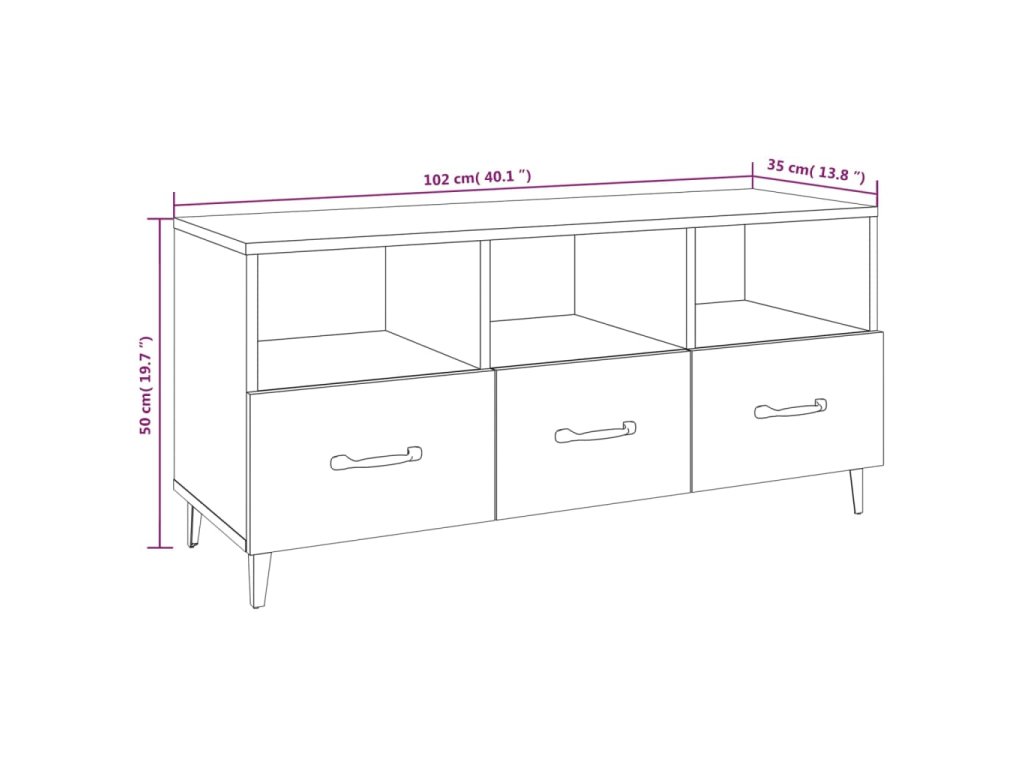 vidaXL TV stolík betónovo sivý 102x35x50 cm spracované drevo