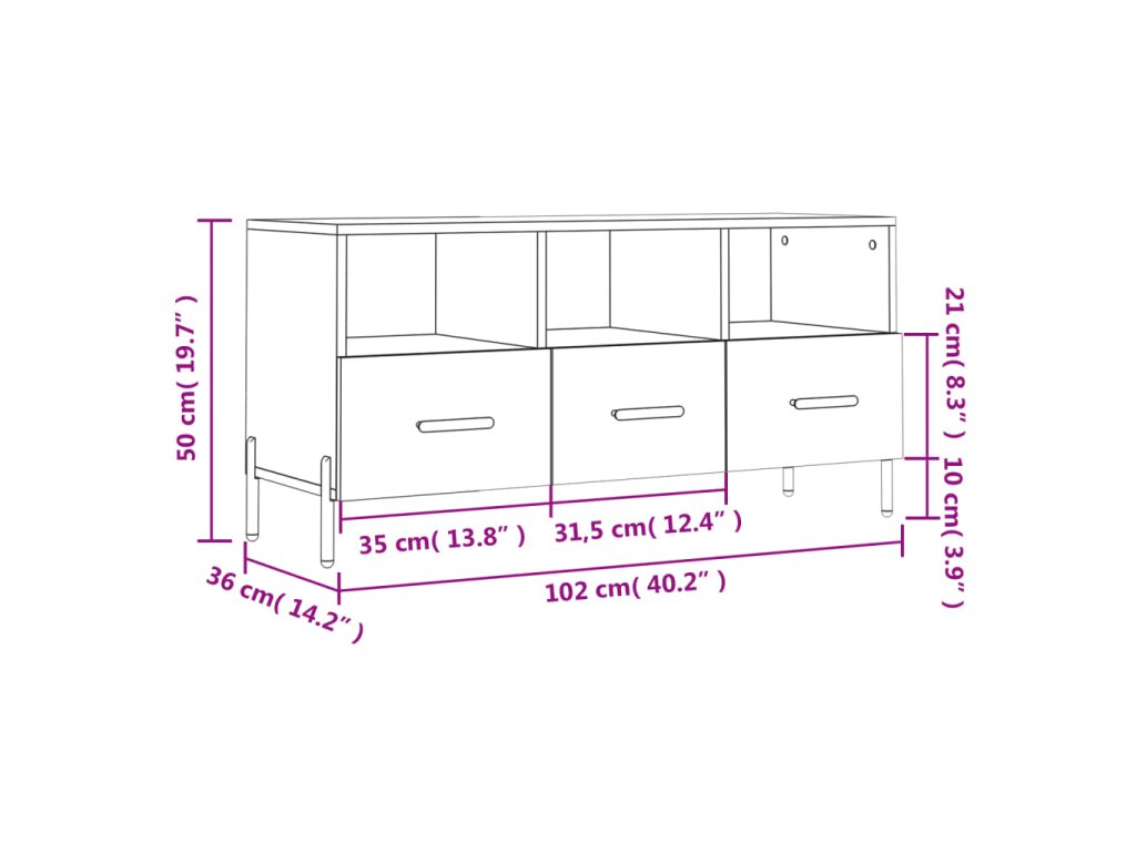 vidaXL TV stolík biely 102x36x50 cm kompozitné drevo