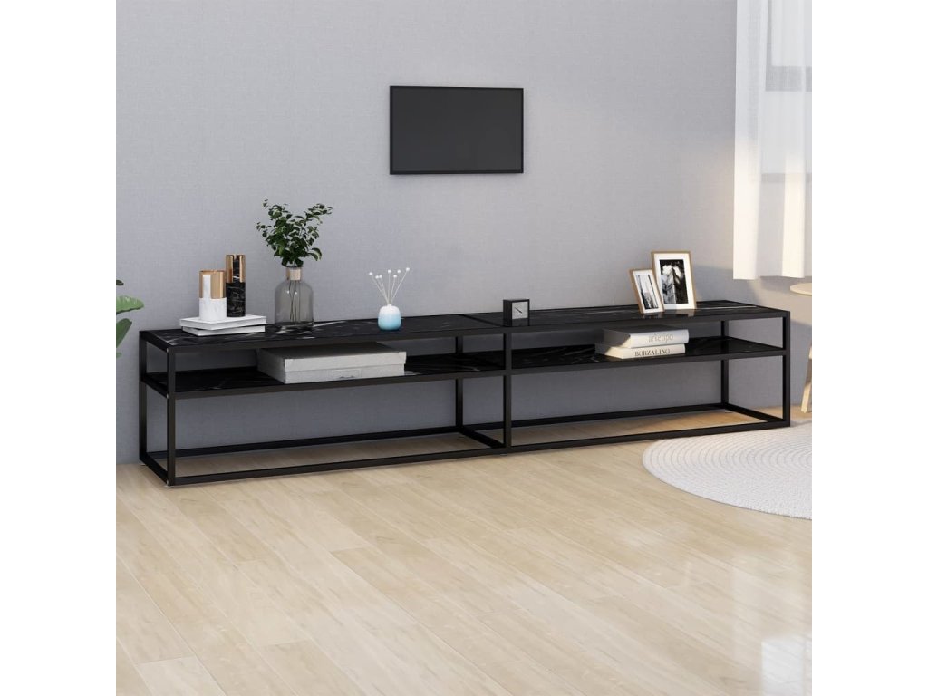 vidaXL TV stolík čierny mramorový 220x40x40,5 cm tvrdené sklo