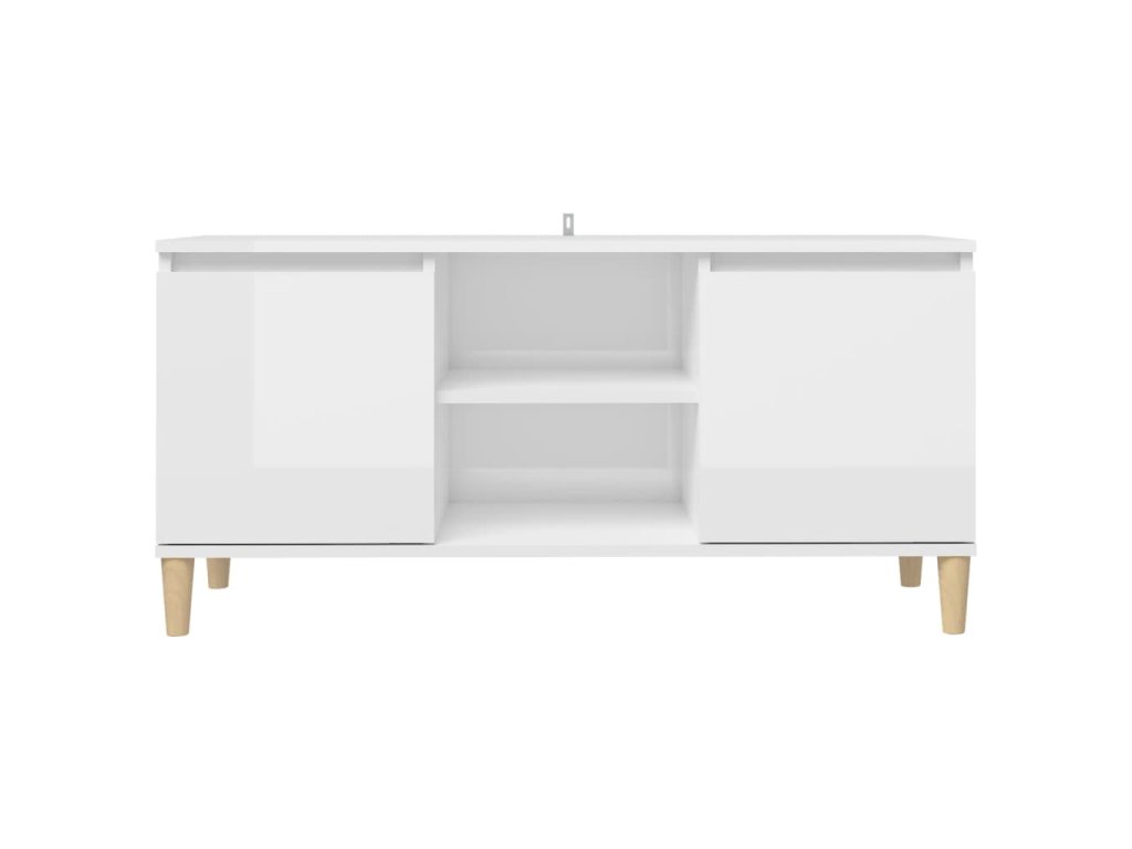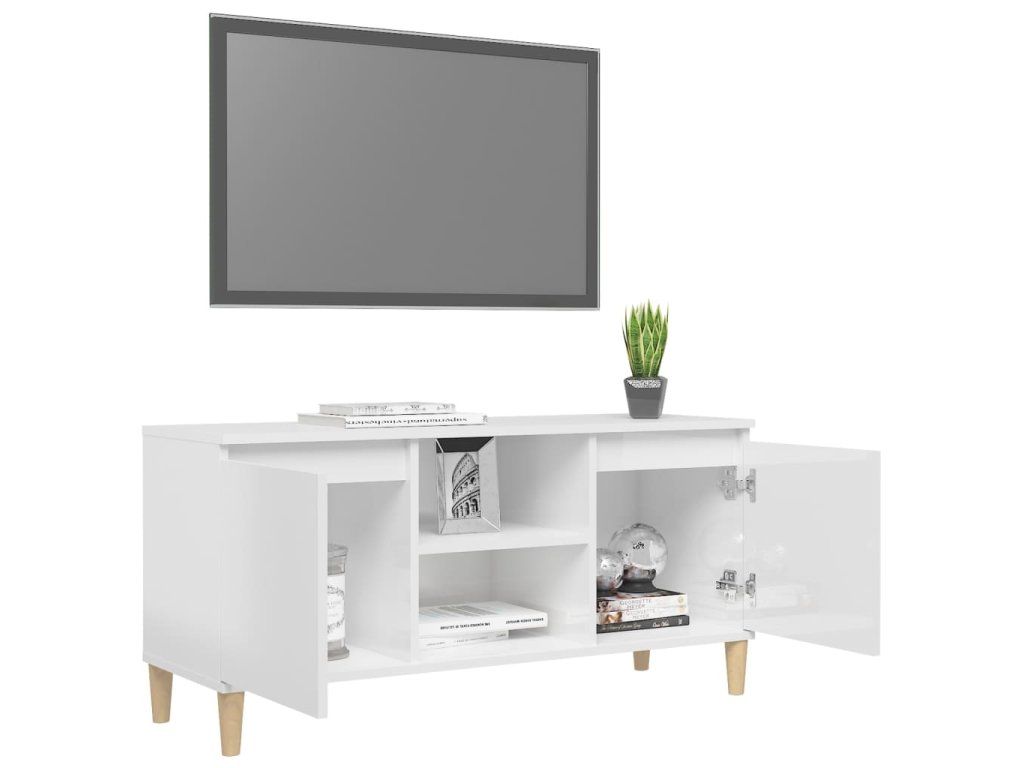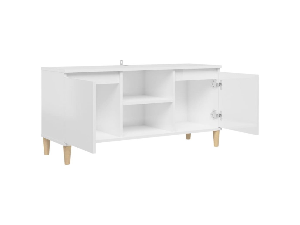 vidaXL TV stolík nohy z masívneho dreva lesklý biely 103,5x35x50 cm
