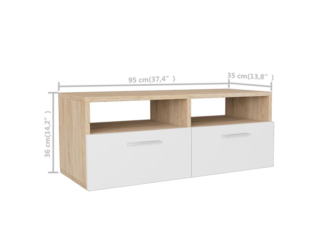 vidaXL TV stolík z drevotriesky, 95x35x36 cm, dubovo-biely