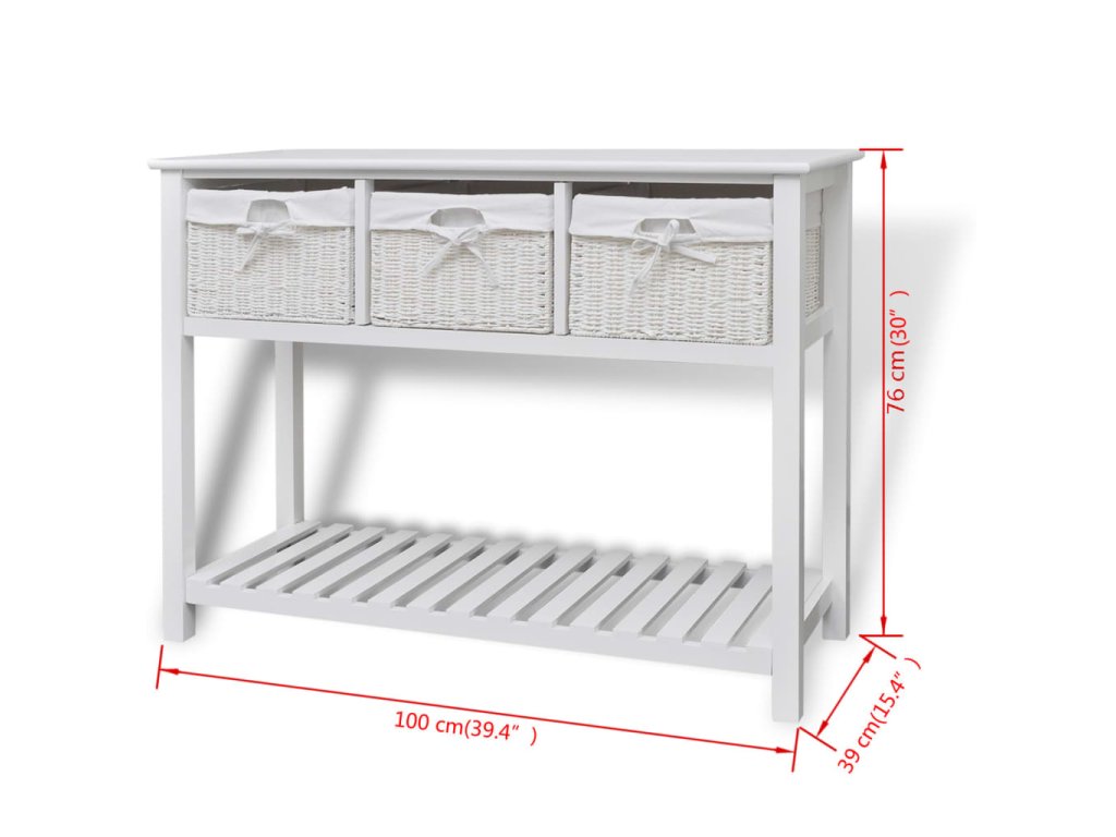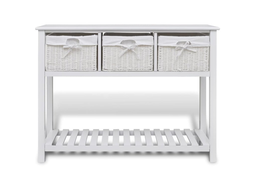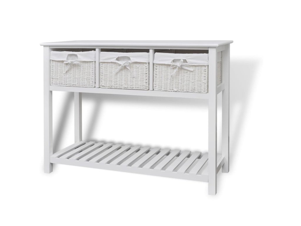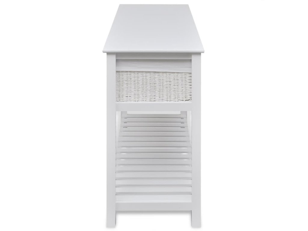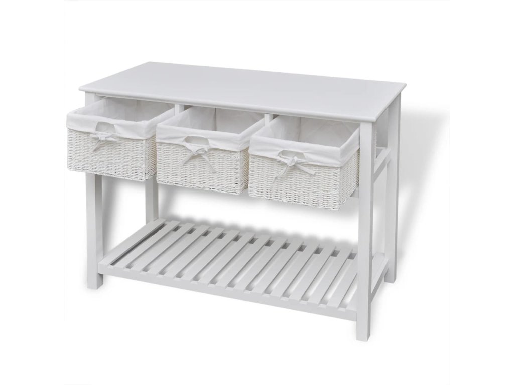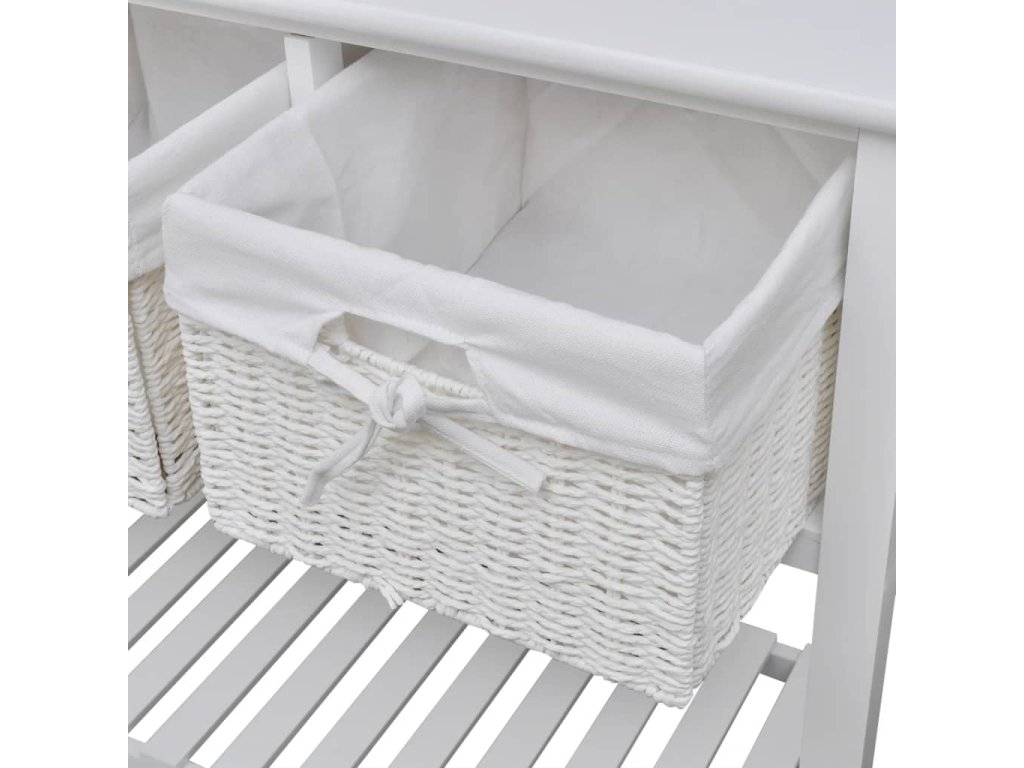 Táto biela komoda s úložným priestorom a pletenými košíkmi má nenápadný dizajn s nádychom romantiky a poskytuje ideálne miesto na odkladanie rôznych predmetov, či už ju umiestnite do spálne, chodby alebo do kúpeľne.