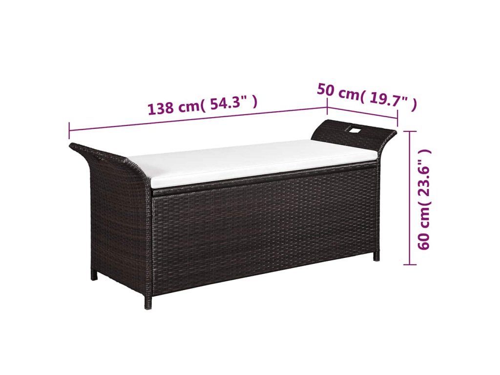 vidaXL Úložná lavica s podložkou 138 cm, polyratan, hnedá