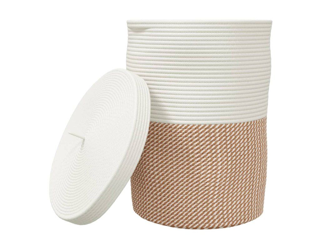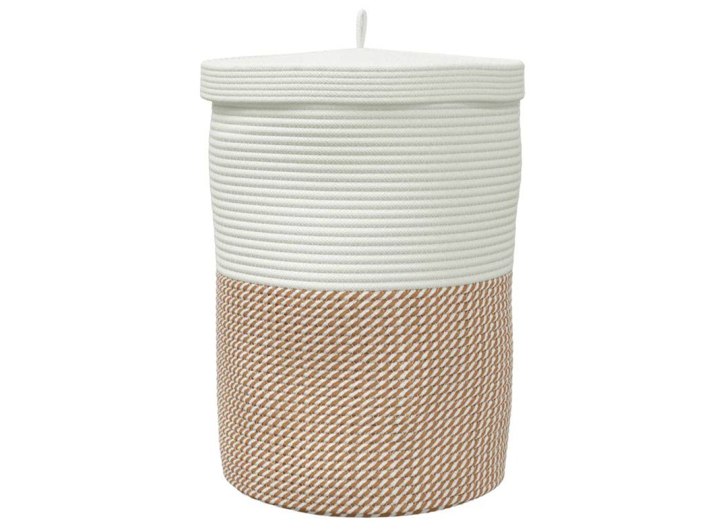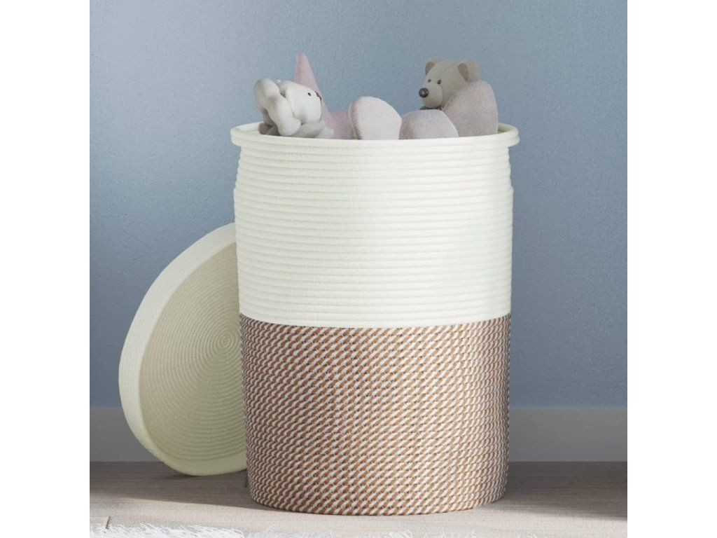 - Odolný materiál: Pletený kôš je vyrobený z tkaných bavlnených povrazov, ktoré sú známe svojou priedušnosťou, mäkkosťou a výnimočnou odolnosťou.