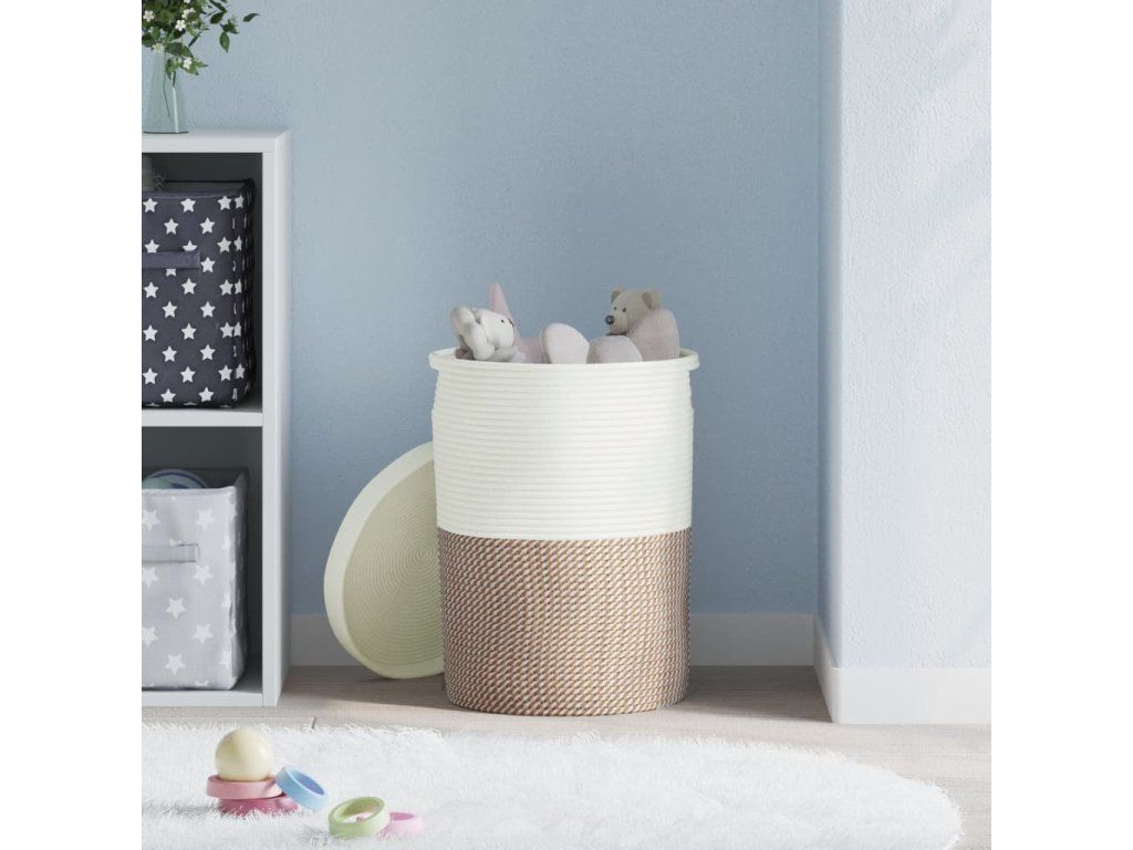 vidaXL Úložný kôš s vekom hnedo-biely Ø37x50 cm bavlna