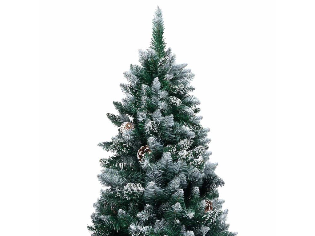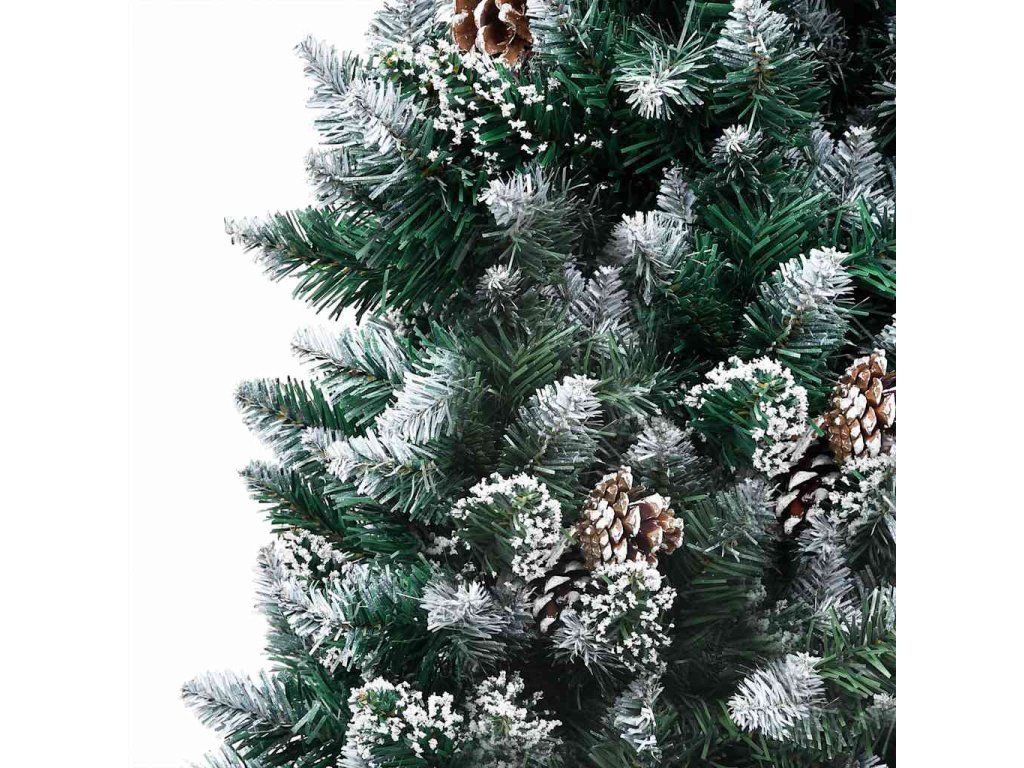 Tento vianočný stromček má mimoriadne husté špicaté ihličie s bielymi trblietkami na špičkách. Vetvičky s ihličím a borovicové šišky sa dajú upravovať do akéhokoľvek tvaru. Tento vianočný stromček môžete na rozdiel od živého používať opakovane každý rok, takže predstavuje výbornú alternatívu pre všetkých, ktorí chcú počas vianočných sviatkov ušetriť. Súčasťou je aj železný podstavec, ktorý dodáva stromčeku stabilitu. Vďaka energeticky úsporným LED svetlám krásne svieti a vytvára útulnú sviatočnú atmosféru. Navyše tento vianočný stromček ozdobený krásnym špicom a guľami bude vo vašej domácnosti pútať pozornosť.