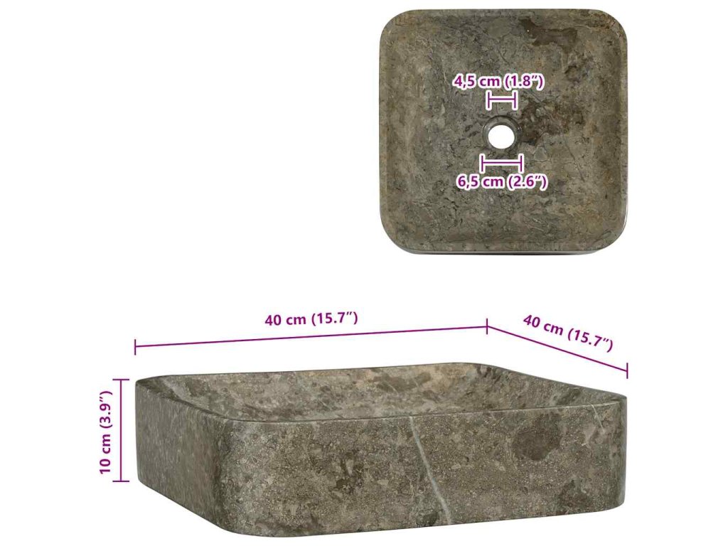 Poznámka: Mramor je prírodný materiál, a preto sa farba jednotlivých výrobkov môže líšiť. Vďaka sivému mramoru môže byť výrobok v skutočnosti o niečo svetlejší alebo tmavší než na fotografiách a niekedy sa na ňom môže vyskytovať viacero farieb. Príklady skutočnej farby produktu nájdete na poslednom obrázku.