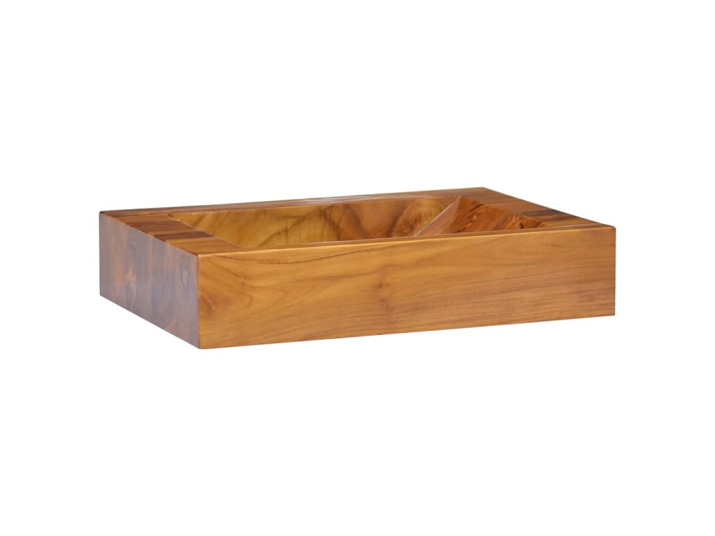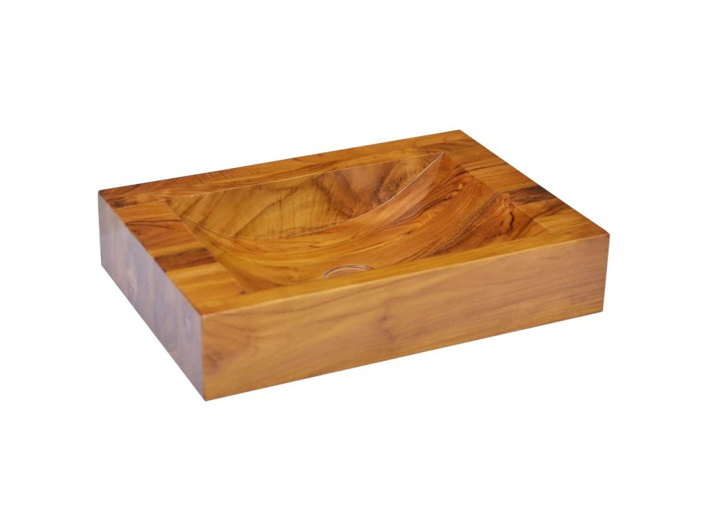 Toto umývadlo je vyrobené z mimoriadne odolného tvrdého teakového dreva, ktoré bolo odlstáte, vysušené v peci a následne jemne obrúsené, aby malo veľmi hladký vzhľad. Okrem toho sa veľmi ľahko čistí.