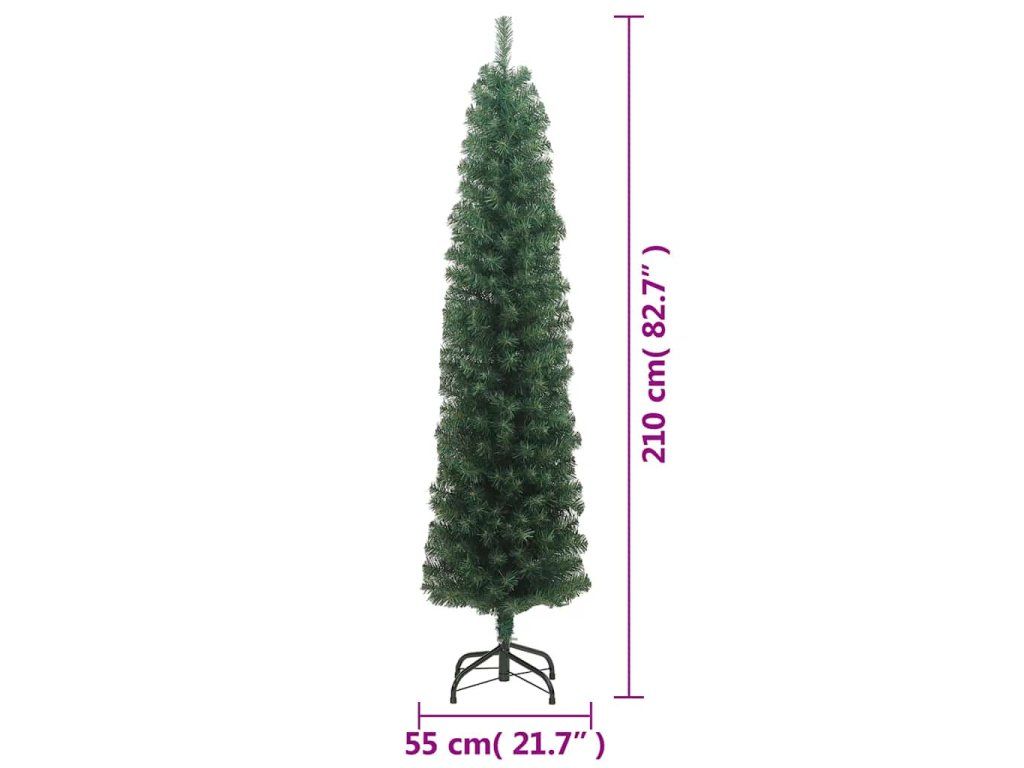 vidaXL Úzky umelý vianočný stromček so stojanom, zelený 210 cm, PVC