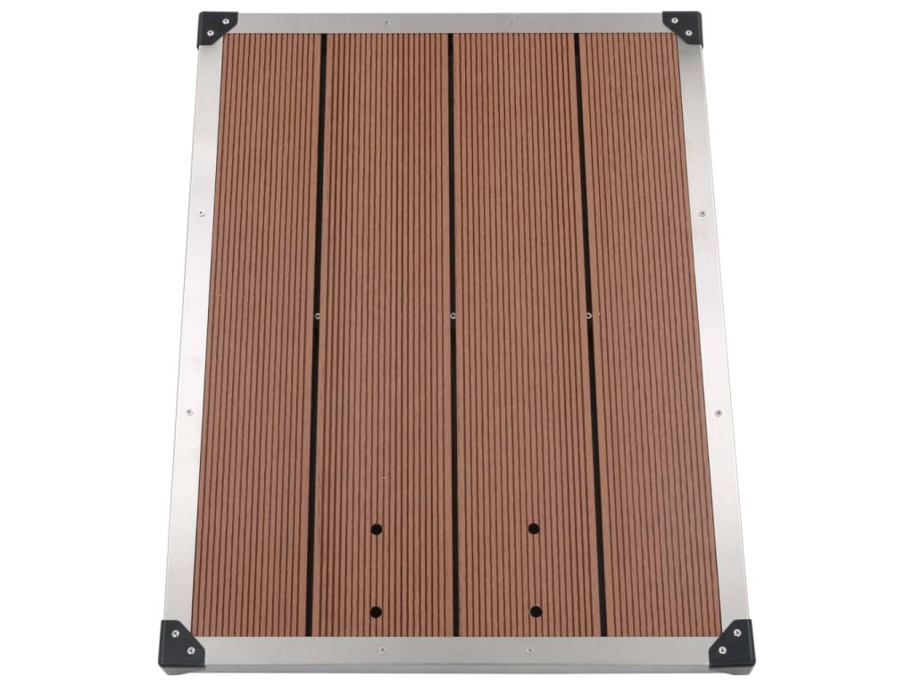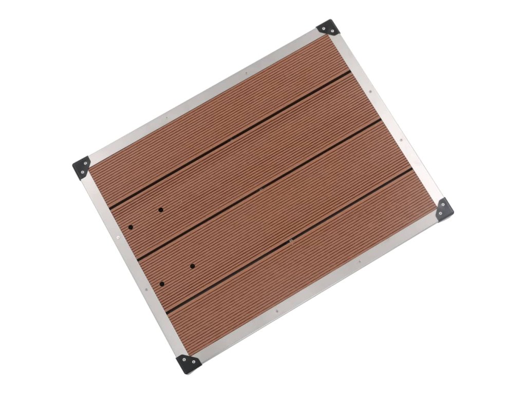 Táto odolná a antikorózna sprchová vanička je vyrobená z prvotriedneho WPC a je orámovaná nehrdzavejúcou oceľou s brúsenou povrchovou úpravou, čo zaručuje jej dlhú životnosť. Sprchová vanička ponúka najvyššiu úroveň hygieny, vďaka čomu je ideálna pre váš vonkajší priestor. Vanička sa ľahko čistí iba vlhkou handričkou. Vďaka robustnosti a univerzálnosti vám môže poslúžiť aj ako základňa rebríkov.