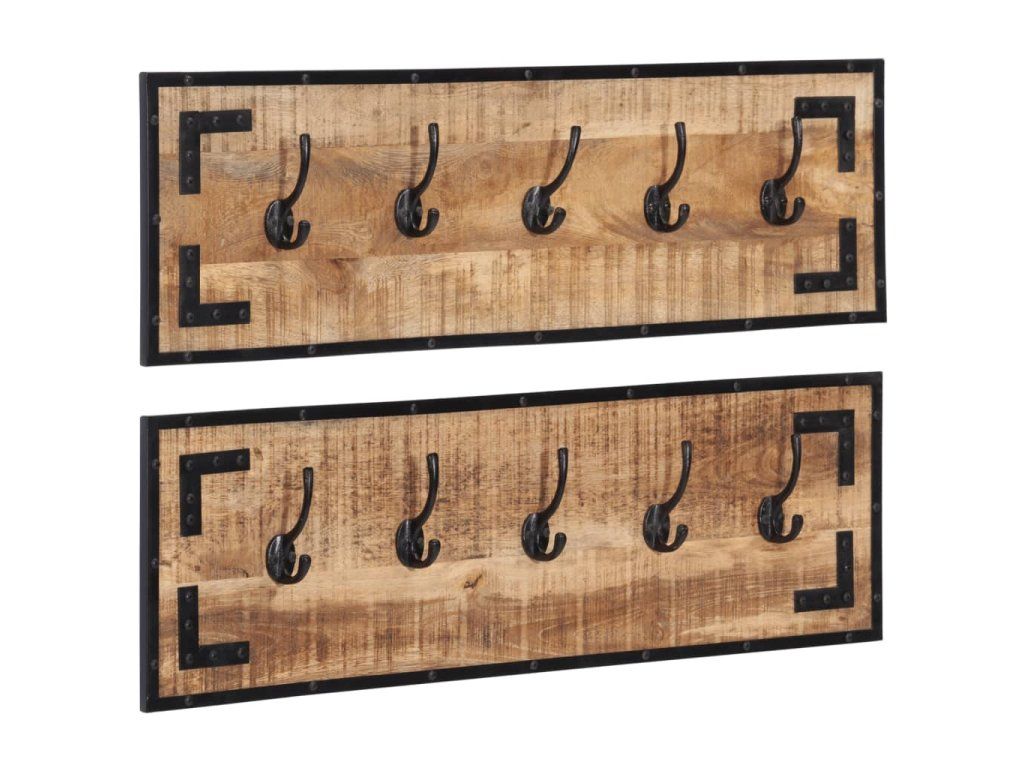 vidaXL Vešiaky na kabáty 2 ks 80x8x25 cm, surový mangový masív