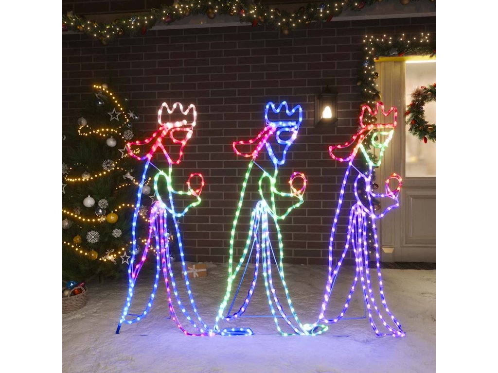 - Farebná silueta postavy: Žiarivá silueta postavy troch kráľov je navrhnutá s 504 farebnými LED svetielkami, ktoré navodia príjemnú atmosféru vašich Vianoc.