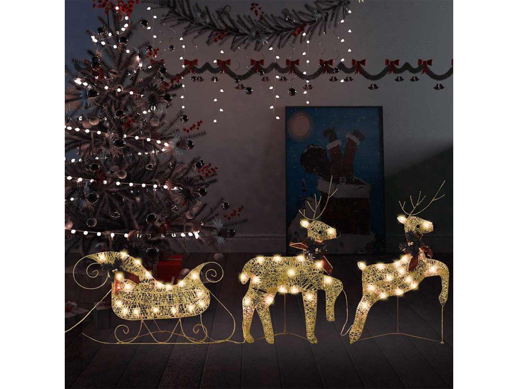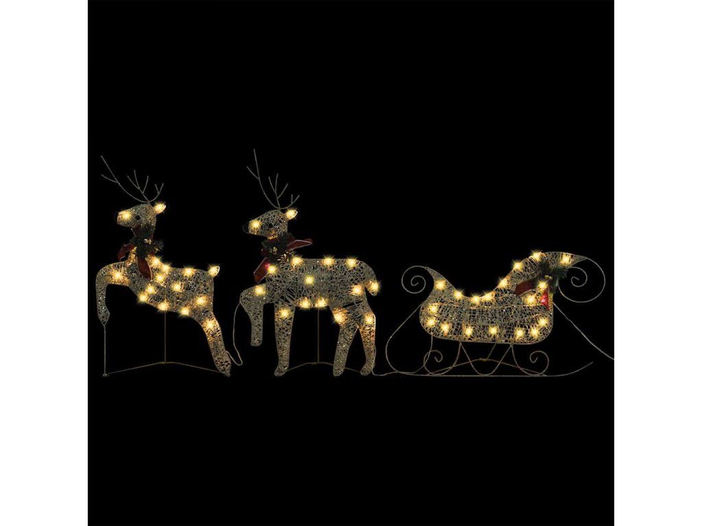 vidaXL Vianočná vonkajšia dekorácia, soby a sane 60 LED diód, zlatá