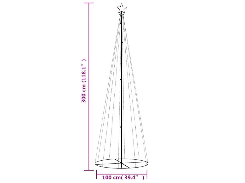 vidaXL Vianočný stromček, kužeľ 310LED, studené biele svetlo 100x300cm