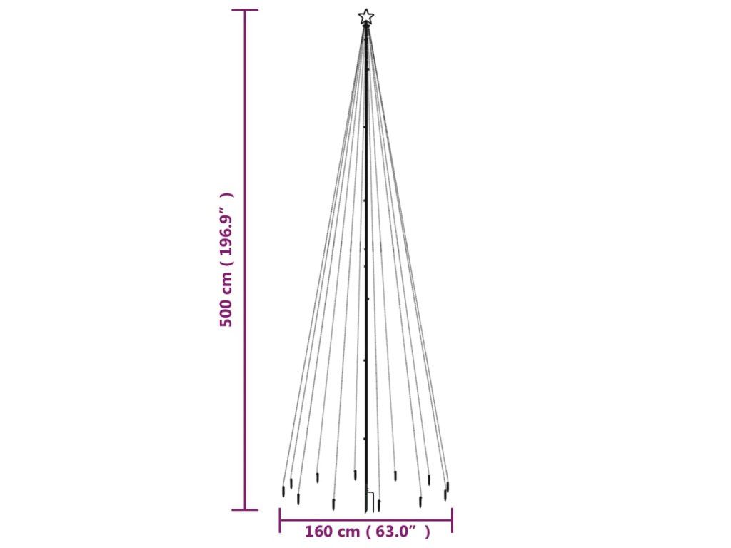 - Stromček s LED: Tento LED vianočný stromček s výškou 500 cm a priemerom 160 cm je špeciálne navrhnutý so 732 studenými bielymi energeticky účinnými LED diódami v priamom tvare.