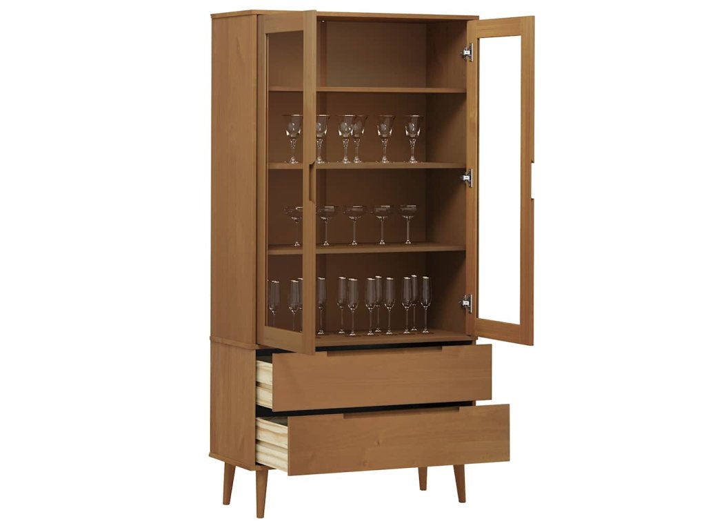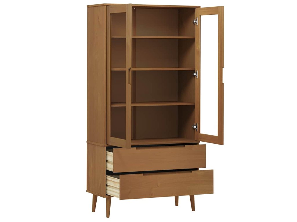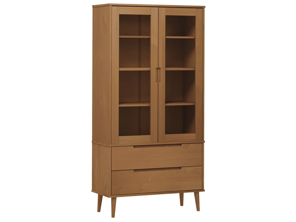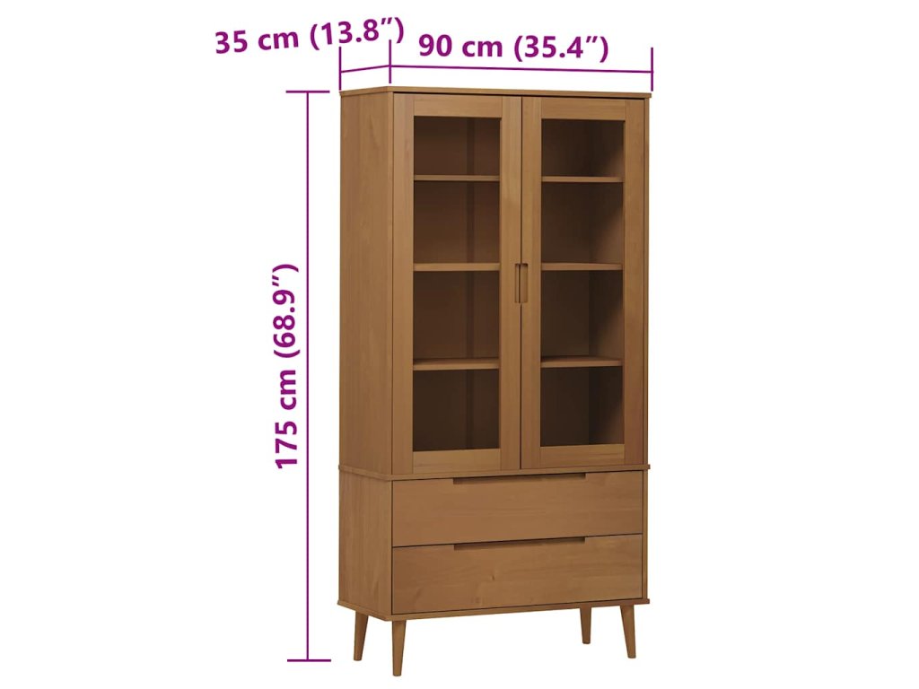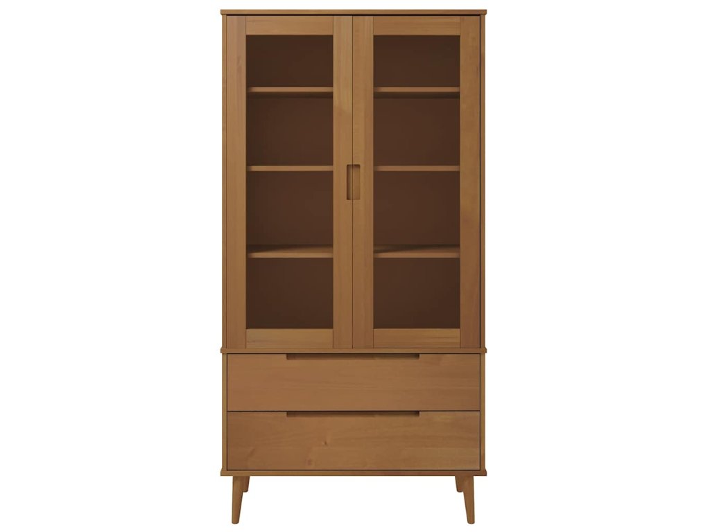 vidaXL Vitrína MOLDE, hnedá 90x35x175 cm, borovicový masív