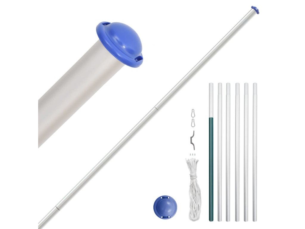 - Jednoduchá obsluha: Vďaka jednoduchému zásuvnému systému je možné kempingový vlajkový stožiar okamžite postaviť. Svoju vlajku môžete bez problémov zdvihnúť a spustiť pomocou priloženého lana a krúžkov.