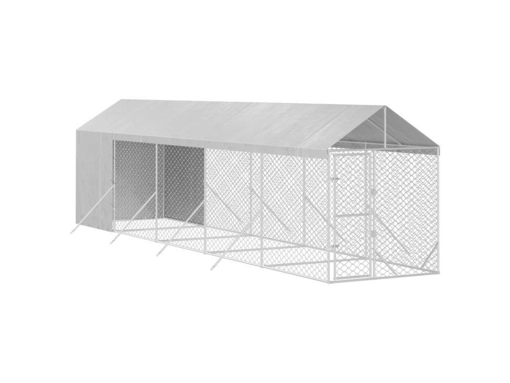 vidaXL Vonkajší koterec pre psov so strechou striebor. 2x10x2,5m oceľ