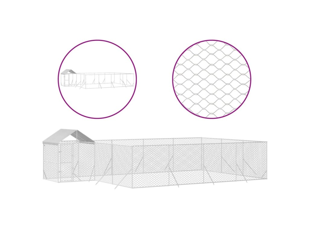 vidaXL Vonkajší koterec pre psov so strechou strieborný 10x6x2,5m oceľ
