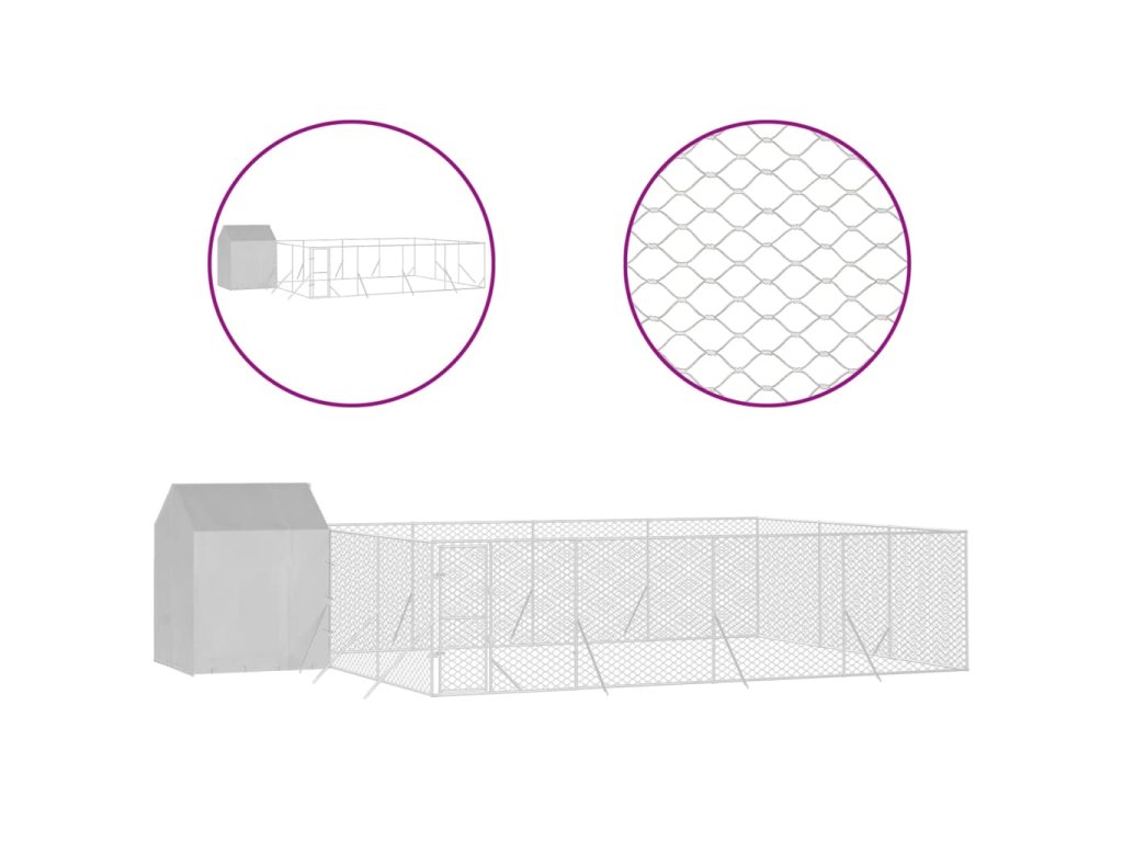 vidaXL Vonkajší koterec pre psov so strechou strieborný 10x6x2,5m oceľ
