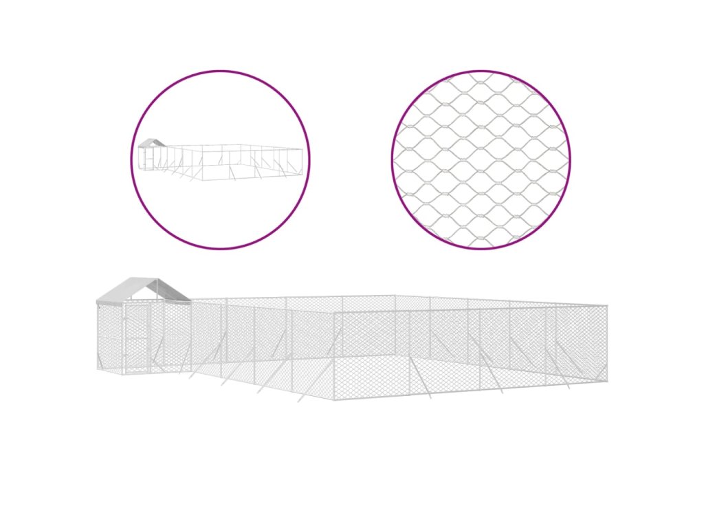 vidaXL Vonkajší koterec pre psov so strechou strieborný 10x8x2,5m oceľ
