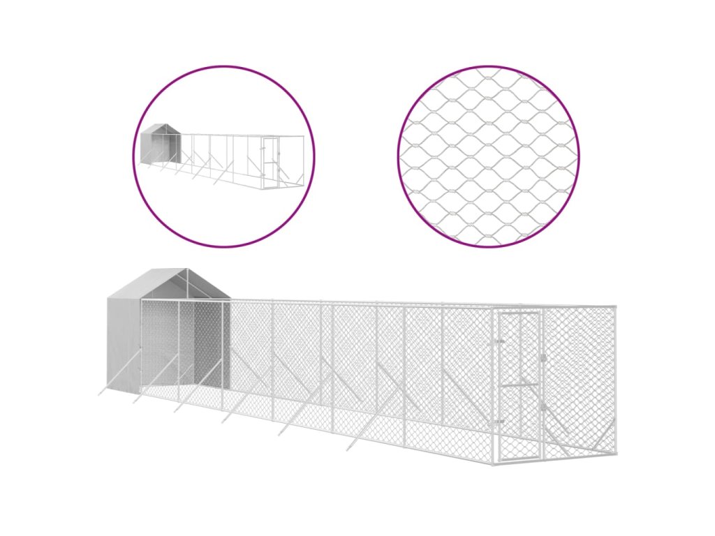 vidaXL Vonkajší koterec pre psov so strechou strieborný 2x14x2,5m oceľ