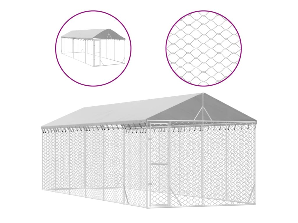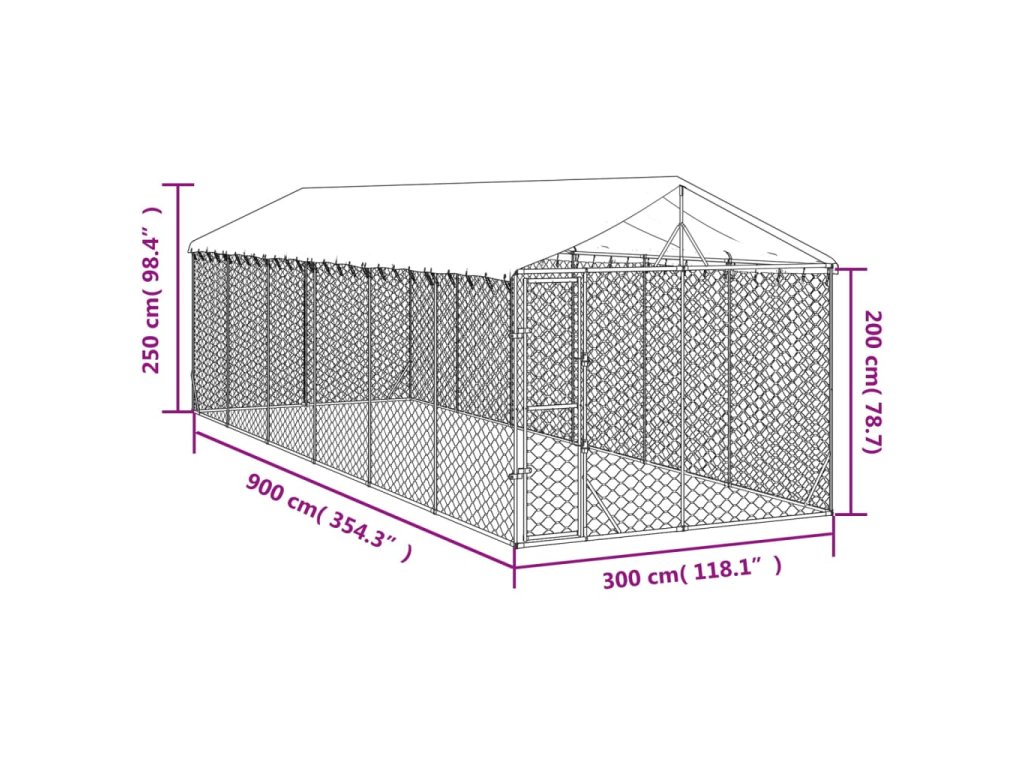 vidaXL Vonkajší koterec pre psov so strechou strieborný 3x9x2,5 m oceľ