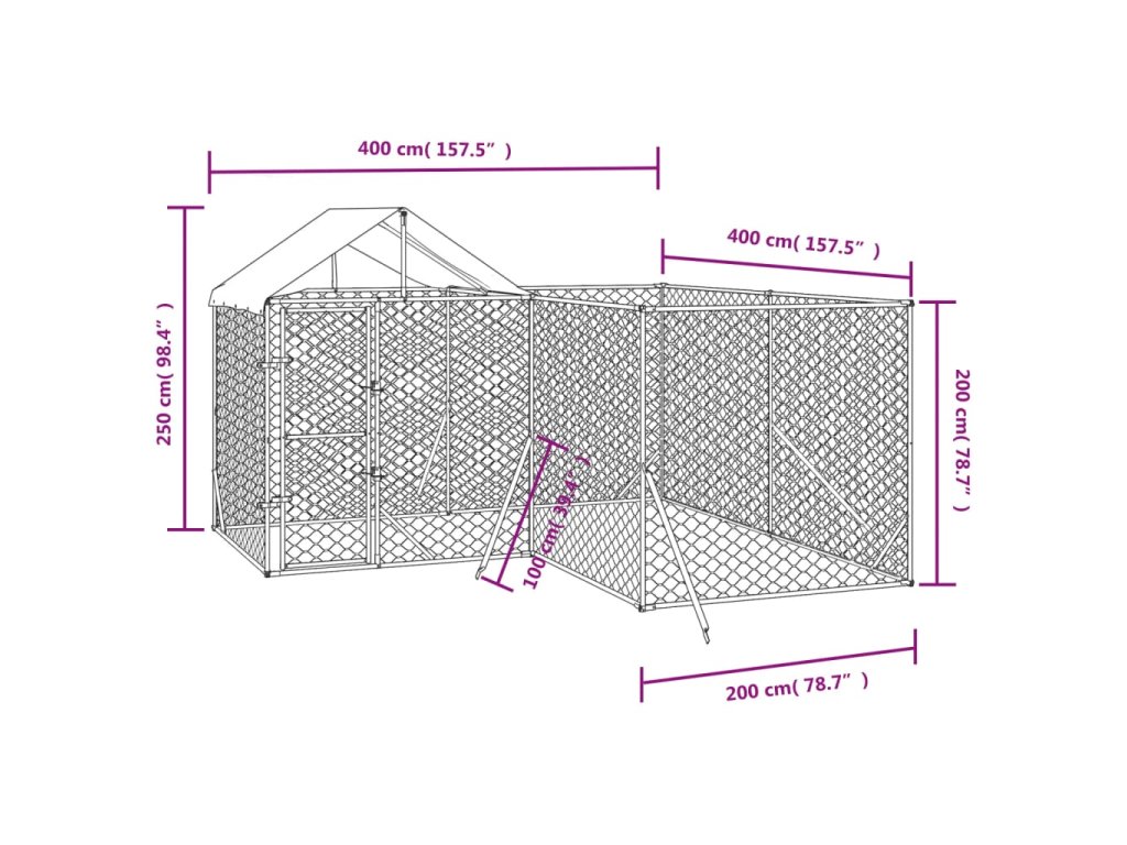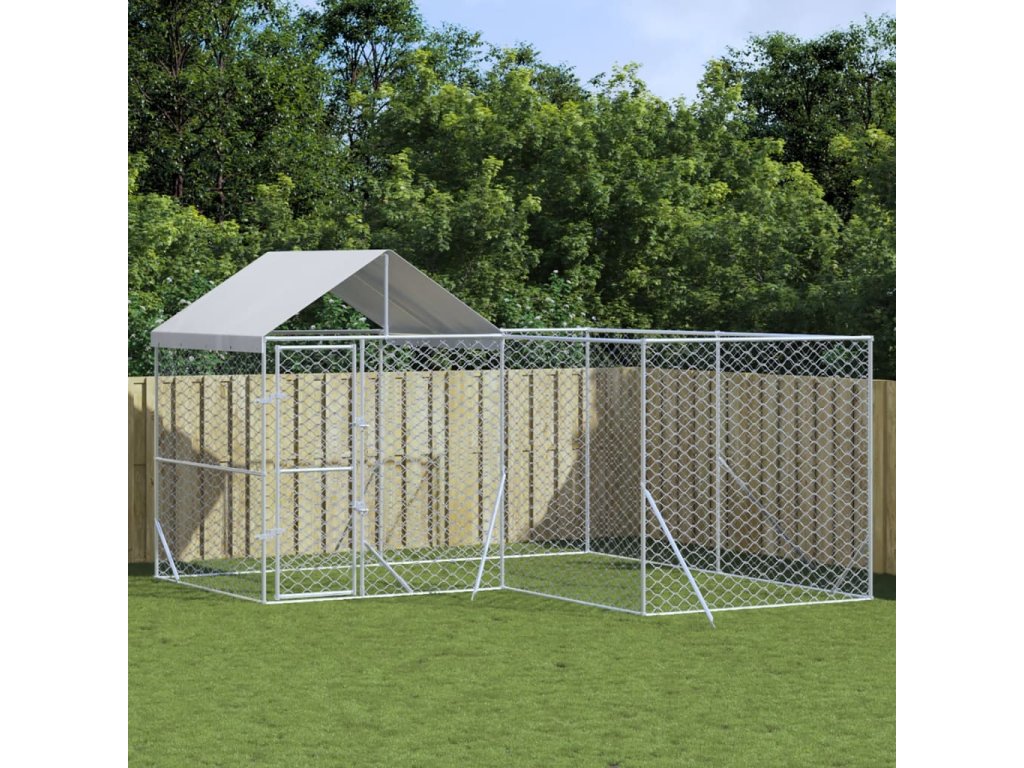 vidaXL Vonkajší koterec pre psov so strechou strieborný 4x4x2,5 m oceľ