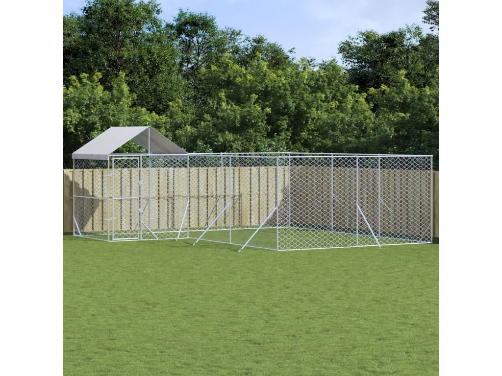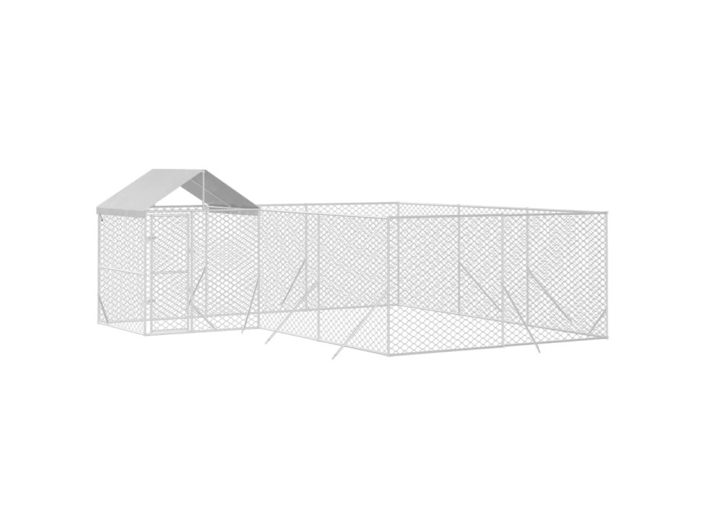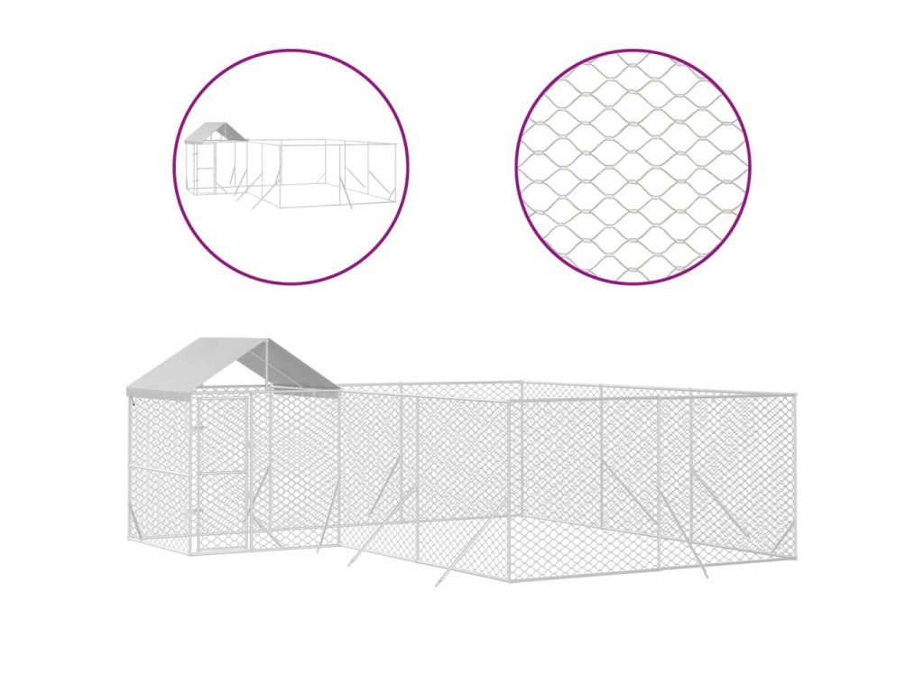 vidaXL Vonkajší koterec pre psov so strechou strieborný 6x6x2,5 m oceľ