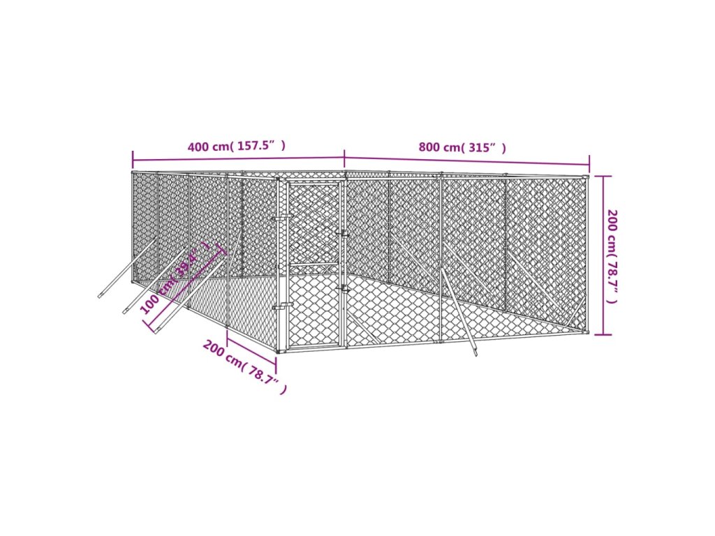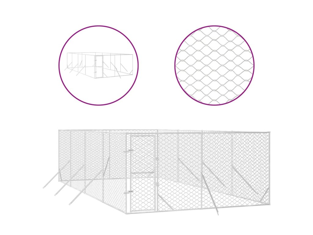 vidaXL Vonkajší koterec pre psov strieborný 4x8x2 m pozinkovaná oceľ