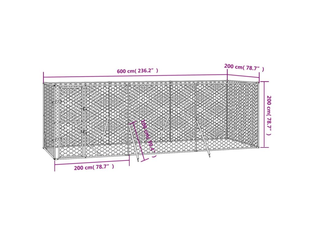 vidaXL Vonkajší koterec pre psov strieborný 6x2x2 m pozinkovaná oceľ