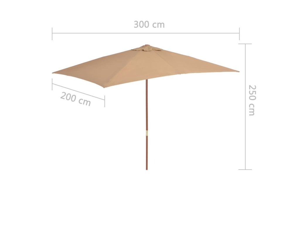 vidaXL Vonkajší slnečník s drevenou tyčou 200x300 cm, sivohnedý