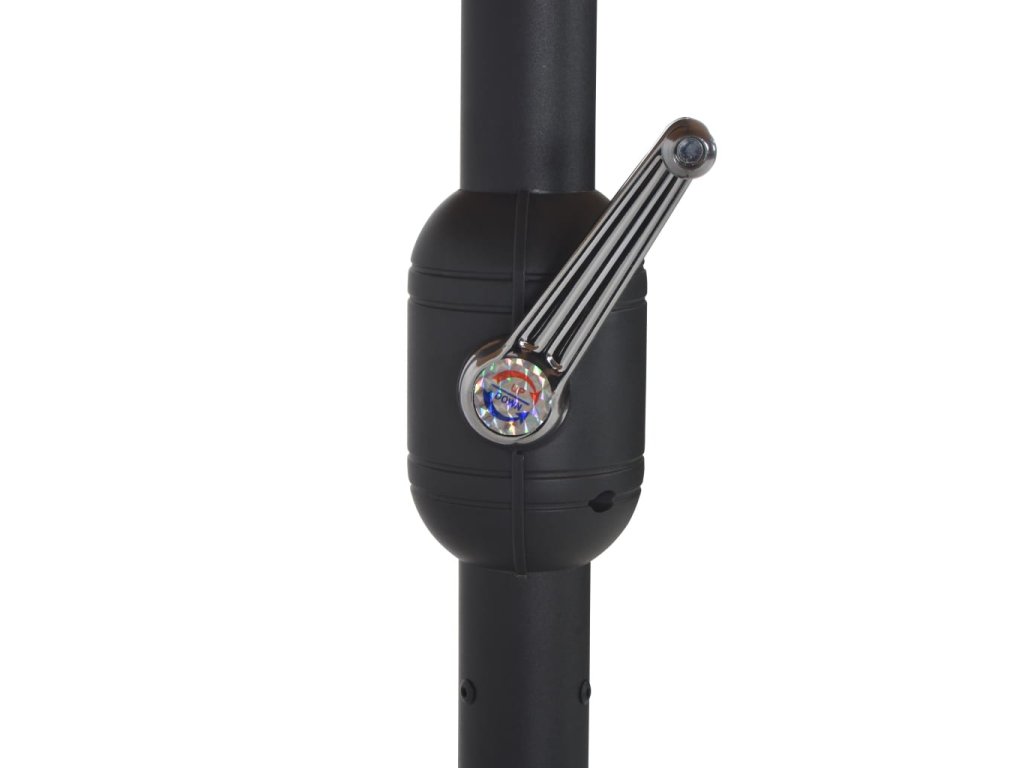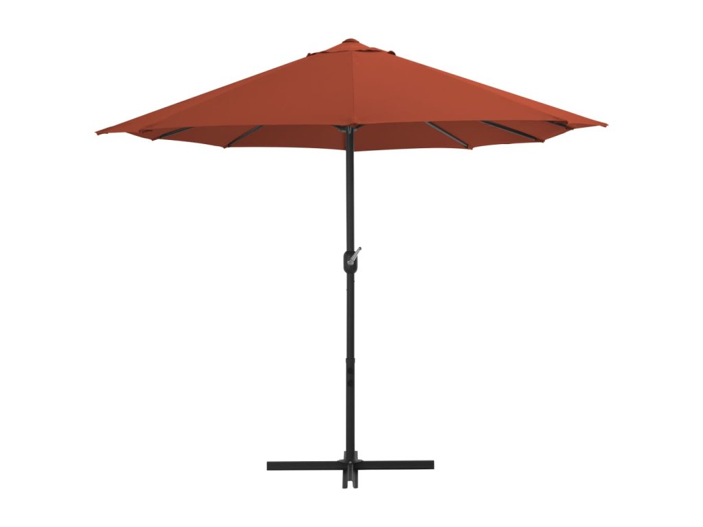 Vrch slnečníka vám poskytne optimálnu ochranu pred slnkom a ľahko sa čistí, pretože je vyrobený z polyesteru odolného voči UV žiareniu a vyblednutiu. Má stabilný krížový podstavec, ktorý slnečníku dodáva stabilitu. Exkluzívny dizajn tohto slnečníka umožňuje nakloniť slnečník, aby zablokoval slnko. Vďaka pevnej hliníkovej tyči a 12 odolným rebrám je slnečník veľmi stabilný a trvácny. Náš záhradný slnečník sa dá ľahko otvárať a zatvárať vďaka kľukovému mechanizmu. Výrobok sa jednoducho montuje.