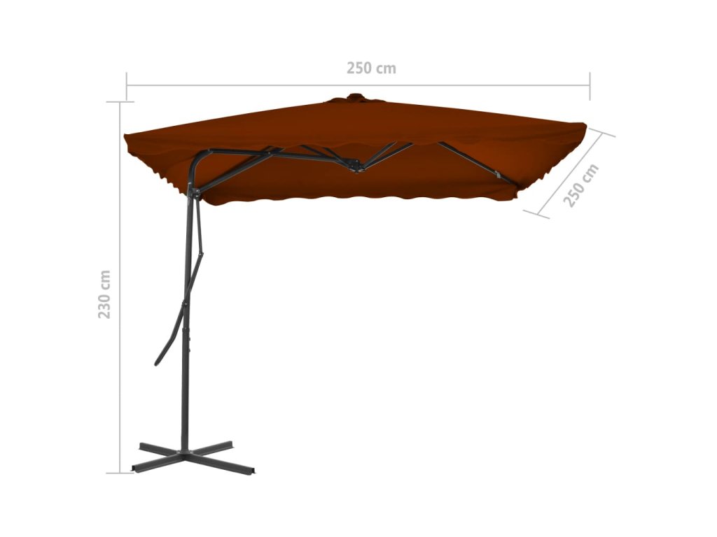 vidaXL Vonkajší slnečník s oceľovou tyčou, tehlový 250x250x230 cm