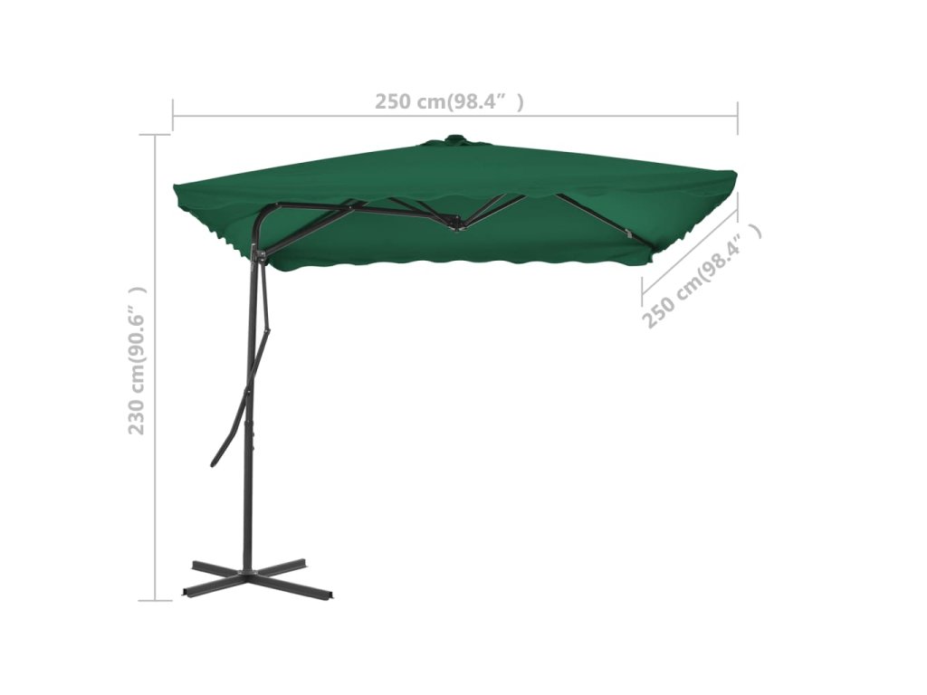 vidaXL Vonkajší slnečník s oceľovou tyčou 250x250 cm zelený