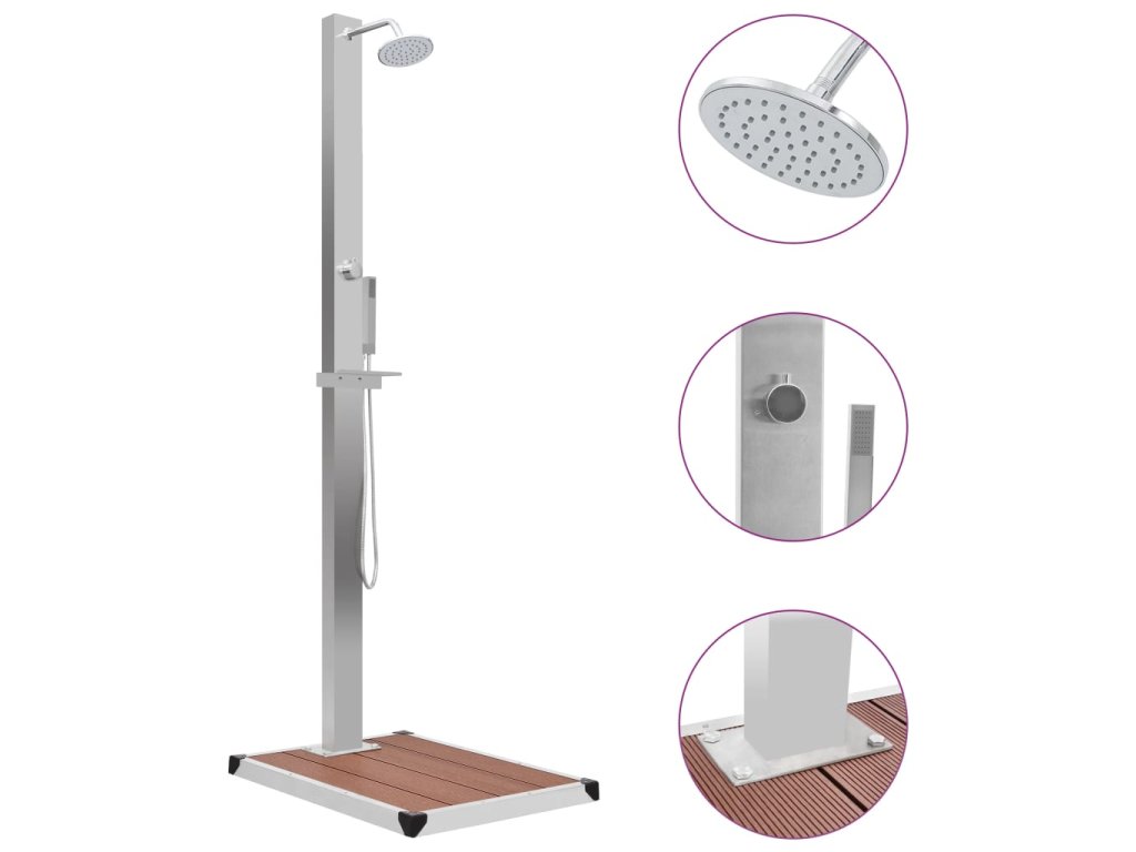 vidaXL Vonkajšia sprcha s vaničkou, WPC, nehrdzavejúca oceľ
