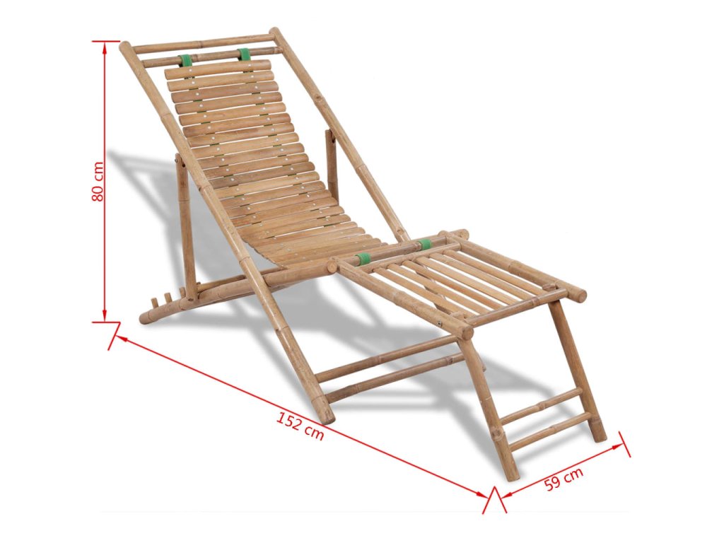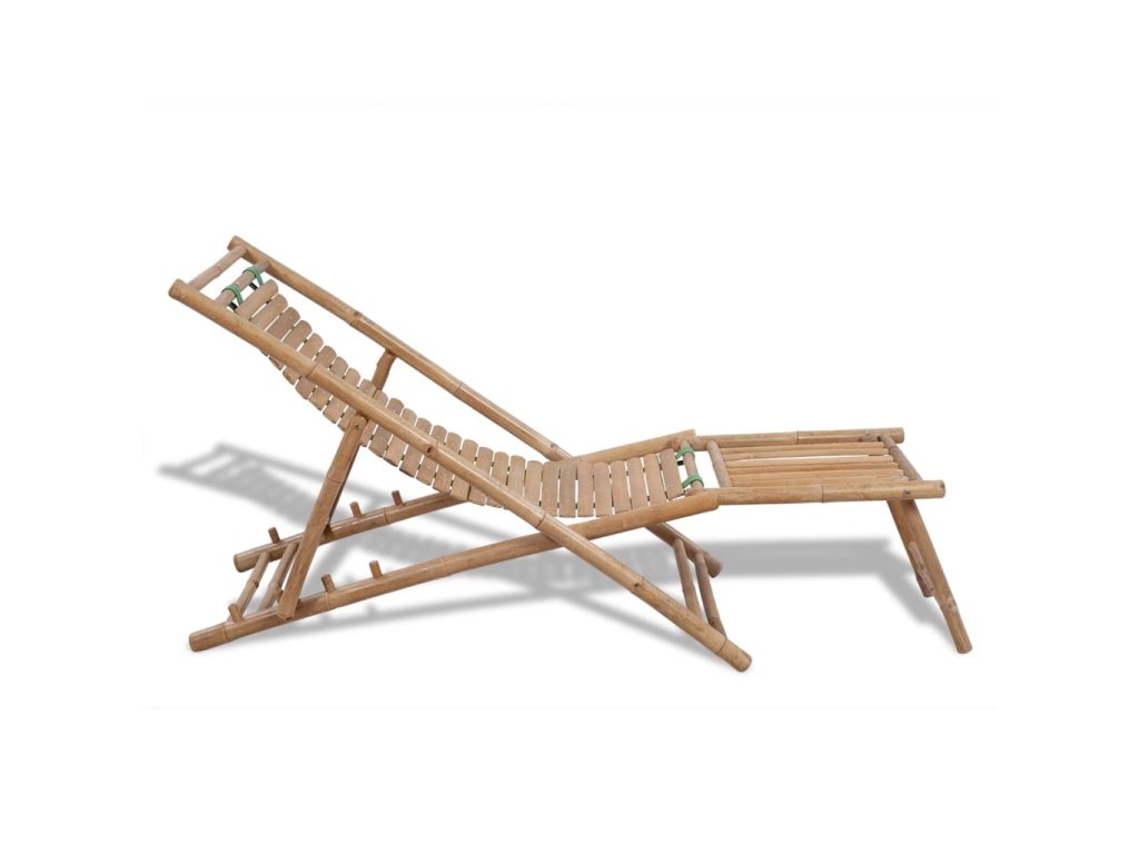 Kreslo na terasu je vyrobené z vysokokvalitného bambusu, ktorý sa vyznačuje vynikajúcou odolnosťou voči poveternostnžm vplyvom a trvácnosťou. Kreslo sa dá nastaviť do 4 polôh pre optimálny komfort. Keď ho nepoužívate, stačí ho poskladať a odložiť.