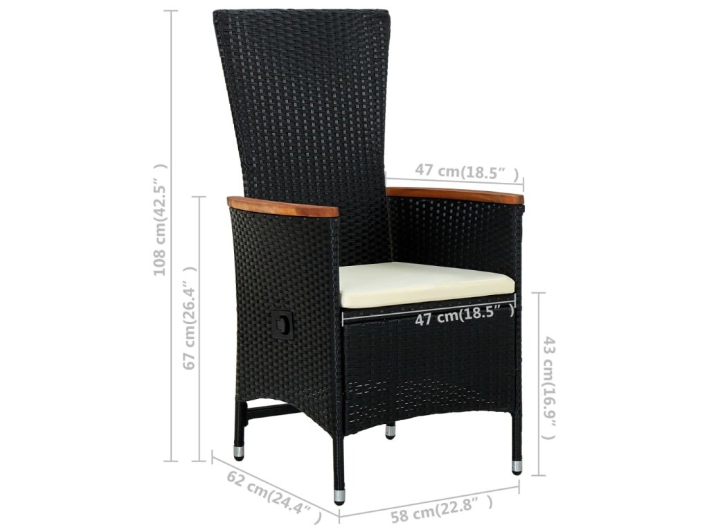 Kreslo je vyrobené z vodovzdorného PE ratanu, takže sa ľahko čistí, je odolné a vhodné na každodenné používanie. Oceľové rámy s práškovou povrchovou úpravou kreslám dodávajú pevnosť a stabilitu. Sklápacie kreslá vám poskytnú potrebné pohodlie pri sedení. Stačí zatlačiť tlačidlo v bočnej časti a operadlo sa sklopí. Keďže majú ľahkú konštrukciu, dajú sa jednoducho premiestňovať. Dodávajú sa spolu s veľmi pohodlnými, nahusto vyčalúnenými podložkami na sedadlo, ktoré prinášajú optimálny komfort. Polyesterové poťahy si nevyžadujú náročnú údržbu a stačí ich zvliecť a oprať. Montáž je jednduchá.