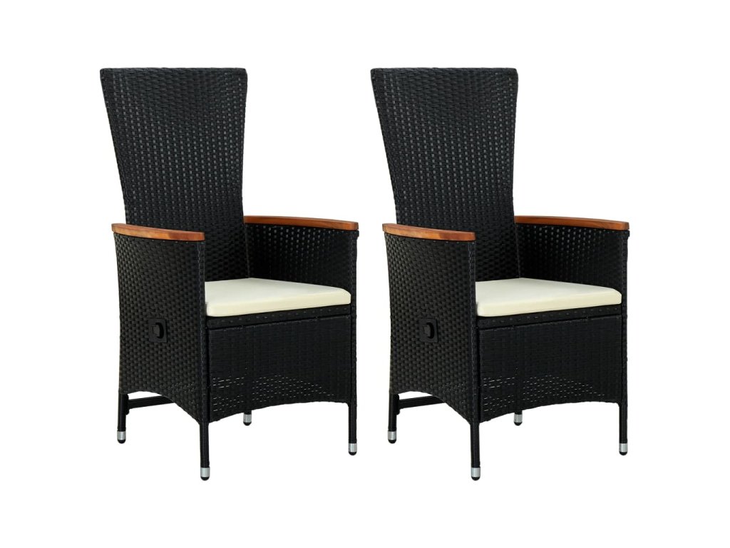 vidaXL Vonkajšie stoličky 2 ks s podložkami, polyratan, čierne