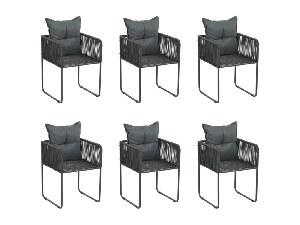 vidaXL Vonkajšie stoličky s vankúšmi 6 ks polyratan čierne
