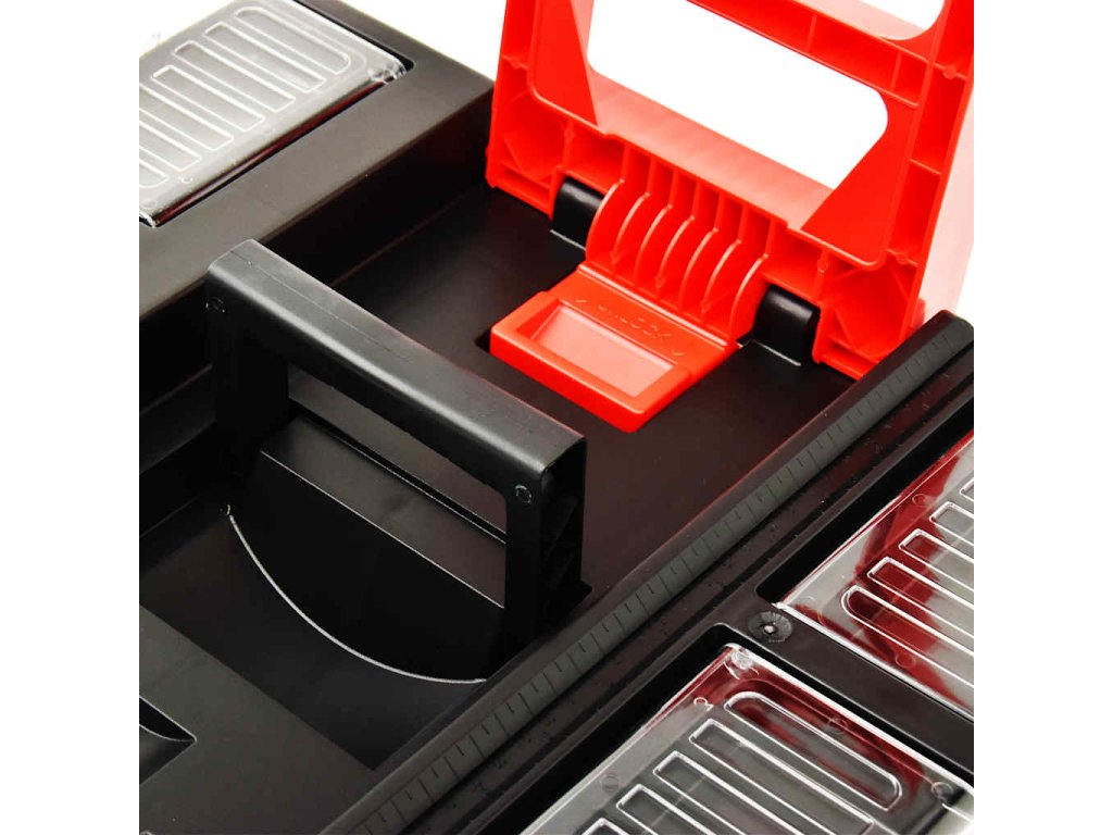 Tento praktický organizér nástrojov bude vynikajúcou pomôckou pre ľudí, ktorí oceňujú poriadok počas vykonávacia domácich kutilských a remeselných prác, ale aj pre profesionálov na pracovisku. Vďaka priehradkám s priehľadnými krytmi na veku môžete ľahko rozpoznať a nájsť skrutky, matice, klince a iné malé časti. Vďaka hlbokým vysokým podnosom a úložným priestorom na bity sa do kufríka zmestí náradie rôznych veľkostí, vďaka čomu si každá súčiastka nájde svoje miesto.