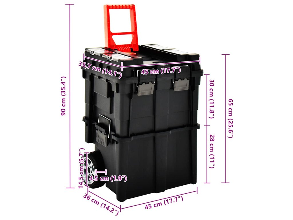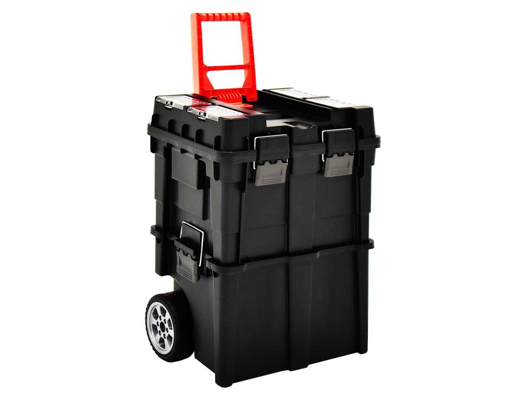Praktická rukoväť a pevné kolieska umožňujú jednoduché prenášanie obsahu. A výrazný stohovateľný dizajn zaručuje, že 2 boxy sa dajú použiť samostatne podľa potreby.